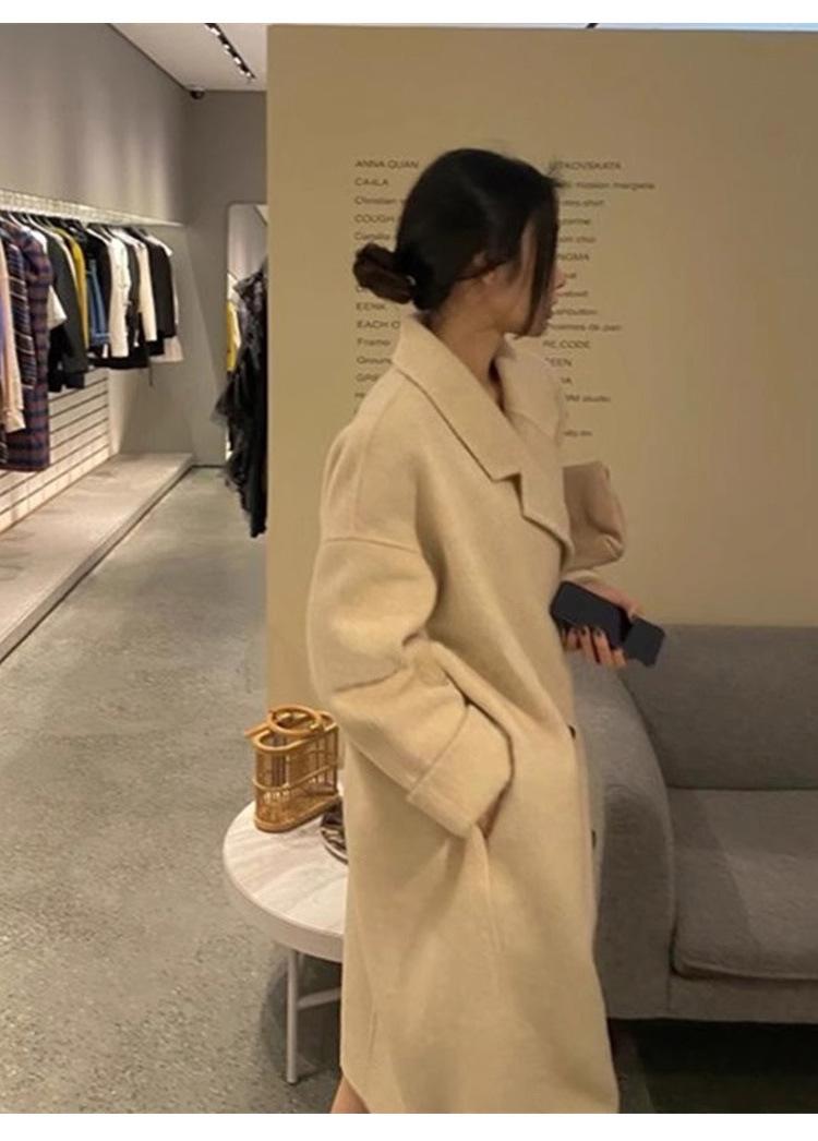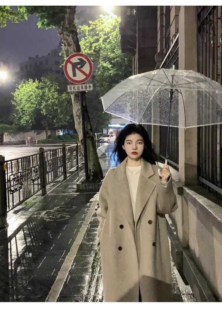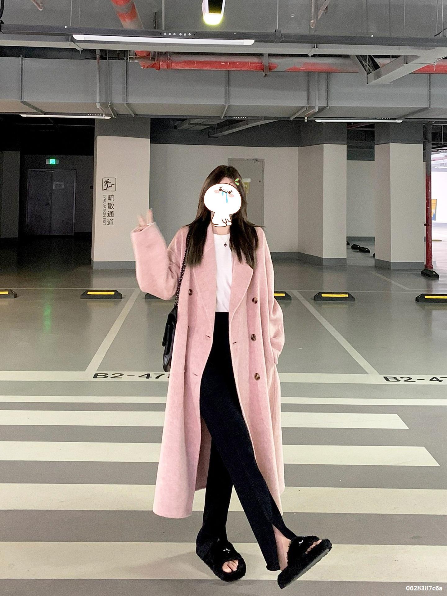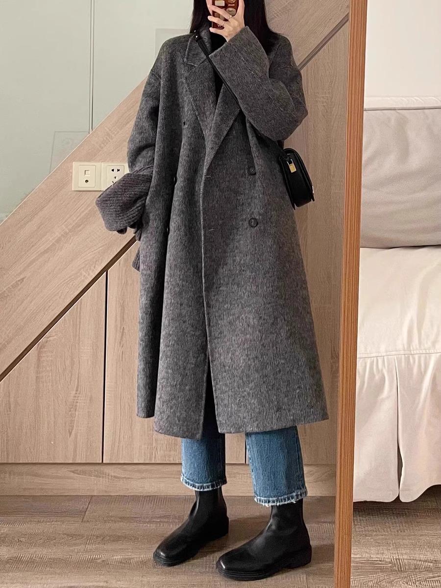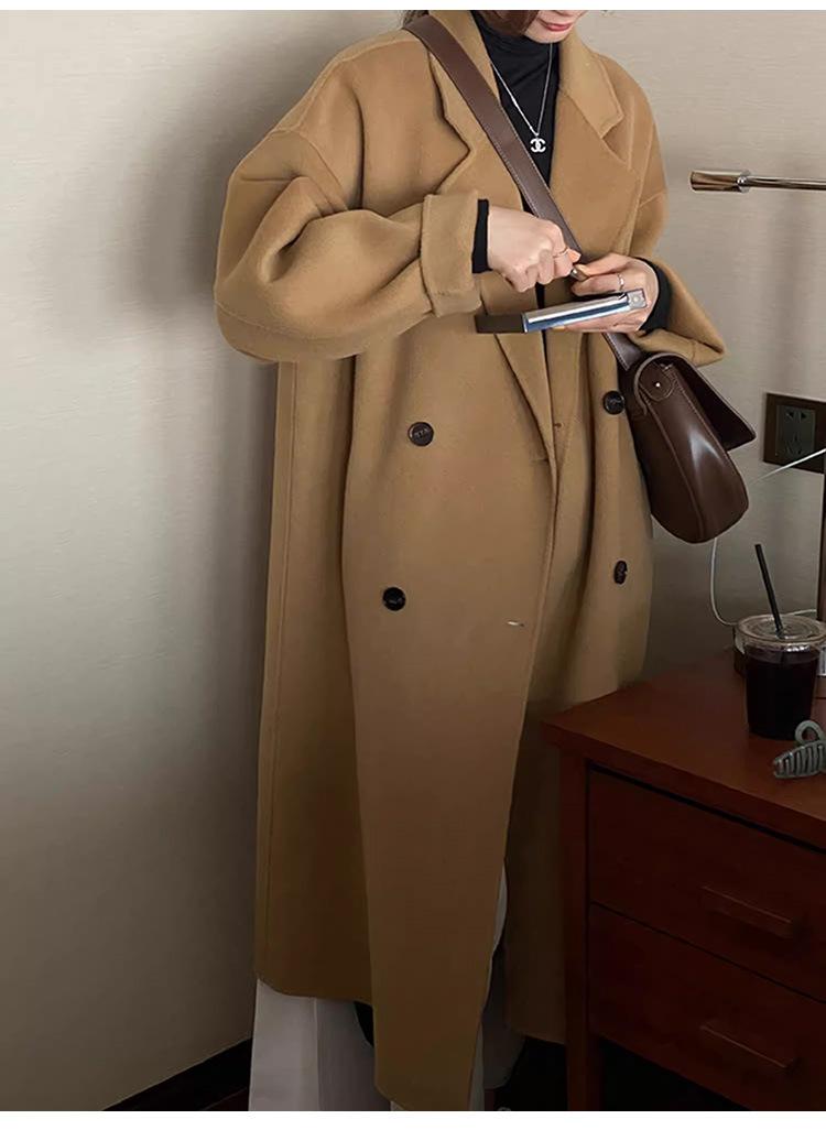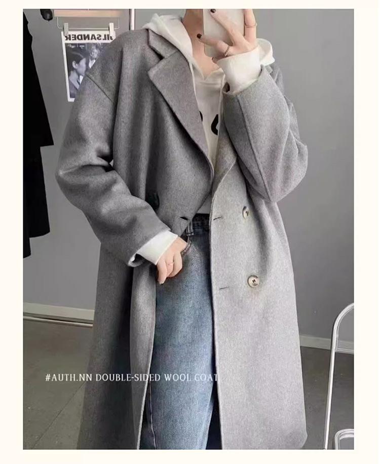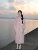 Casaco de Lã Caxemira Rosa para Mulheres, Estilo Longo, Novo Estilo Outono e Inverno 2024, Casaco de Lã Elegante Petite Estilo Coreano