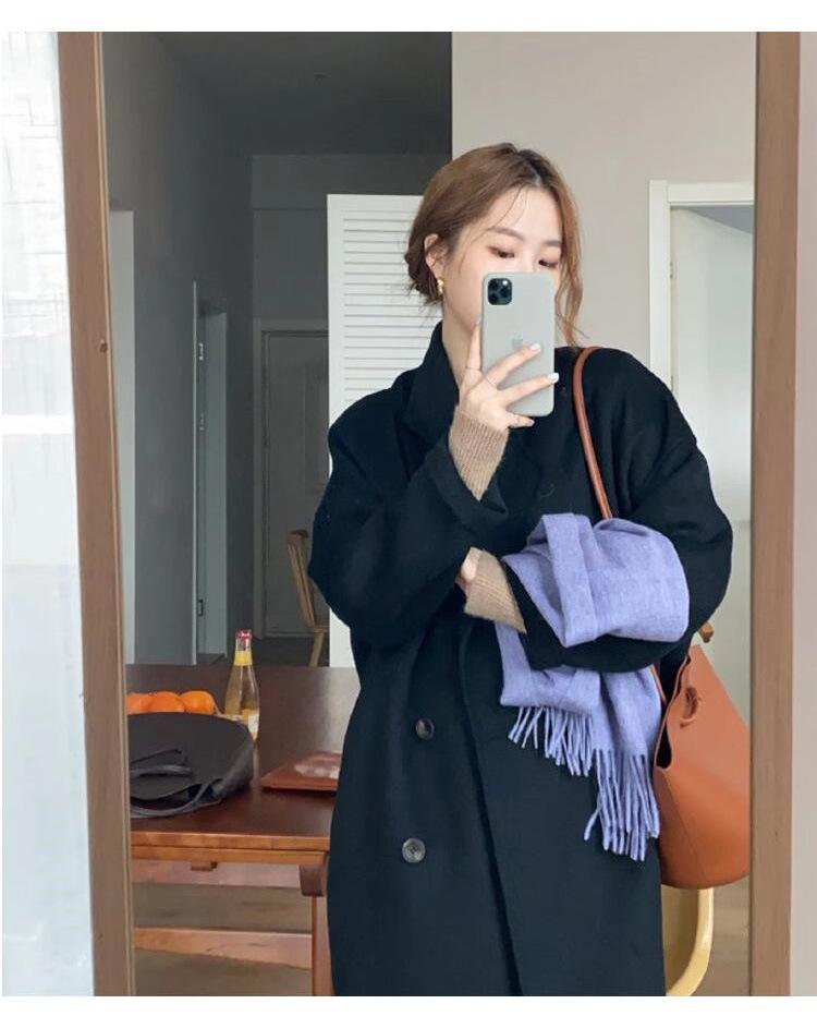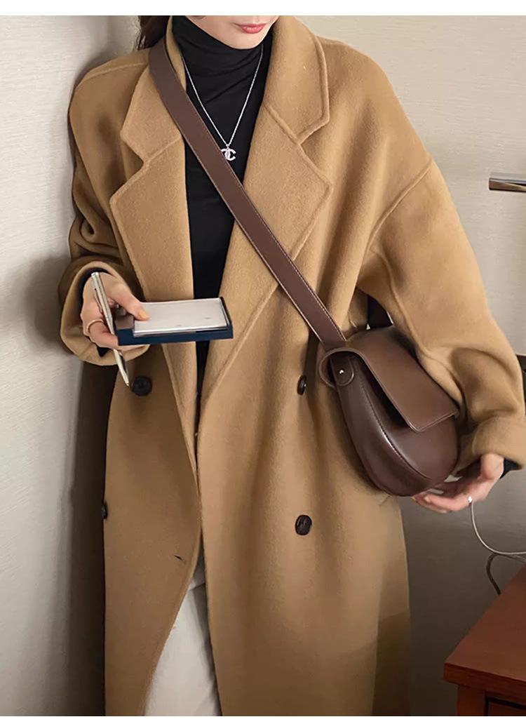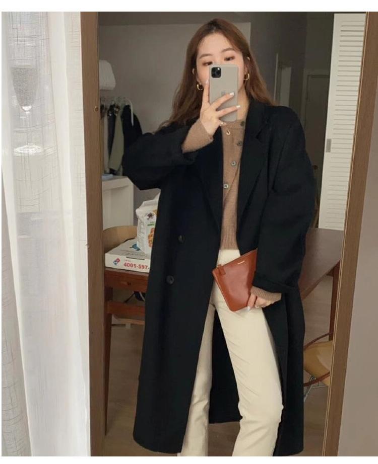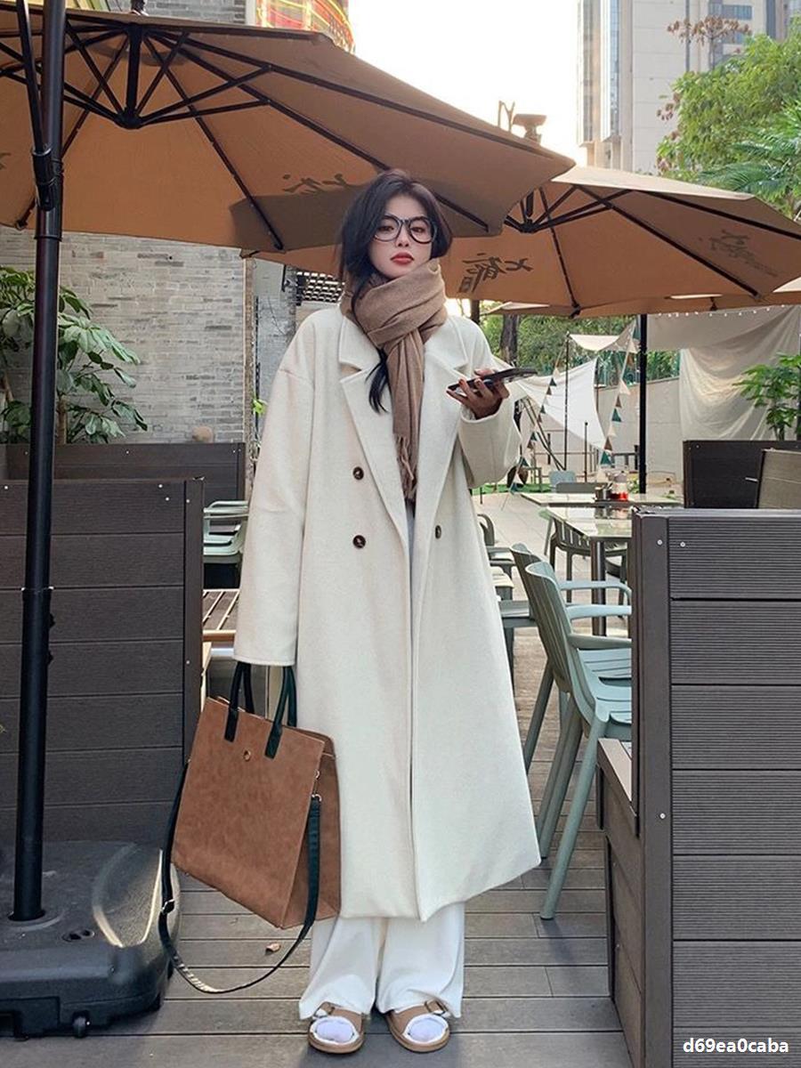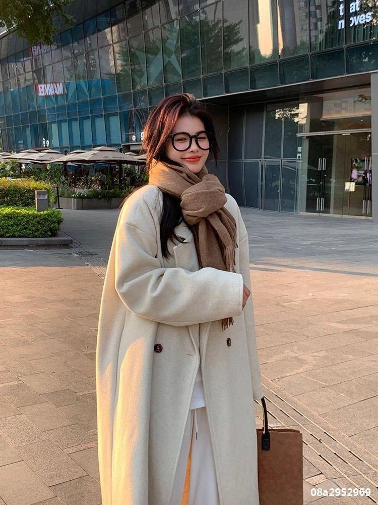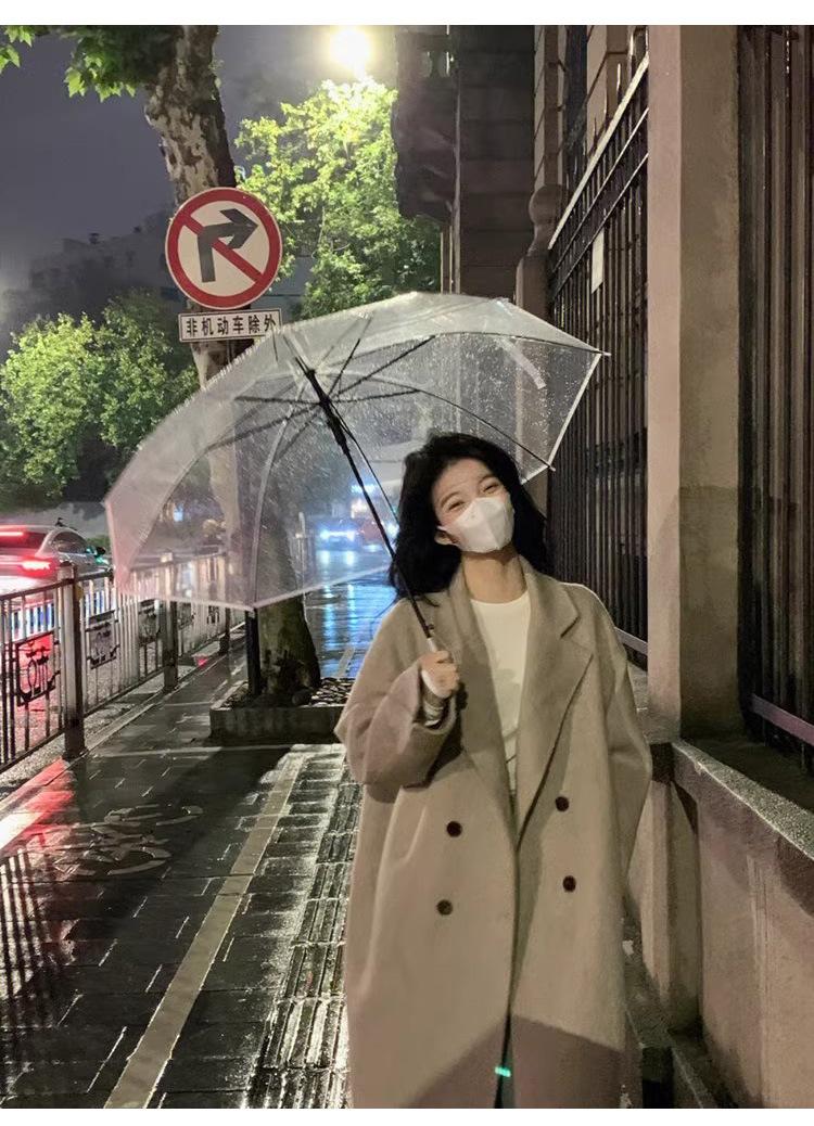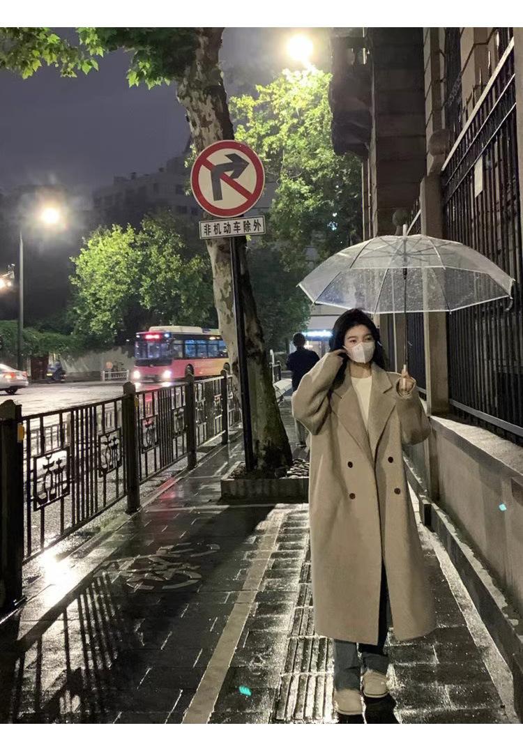 Casaco de Lã Caxemira Rosa para Mulheres, Estilo Longo, Novo Estilo Outono e Inverno 2024, Casaco de Lã Elegante Petite Estilo Coreano