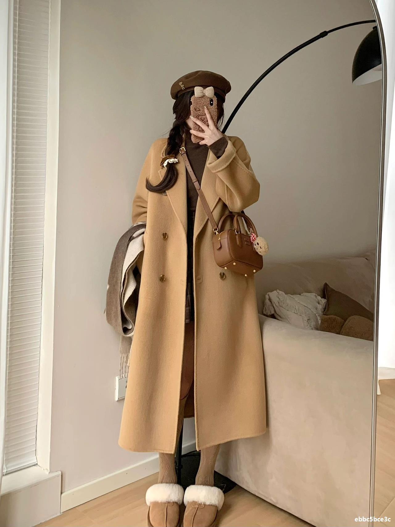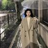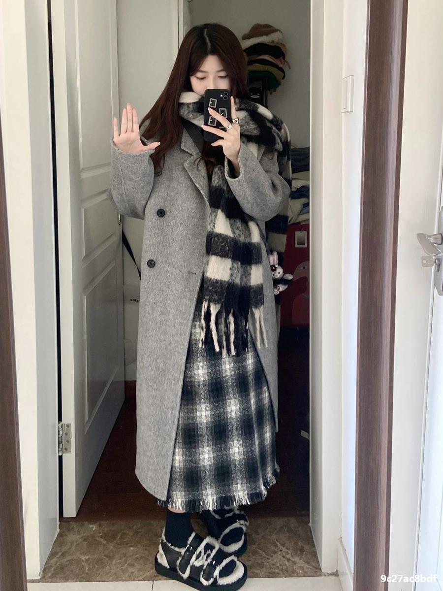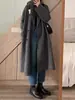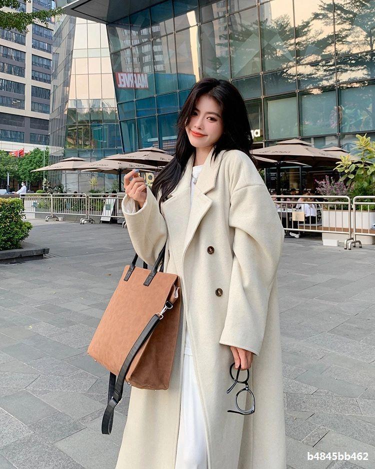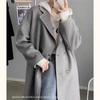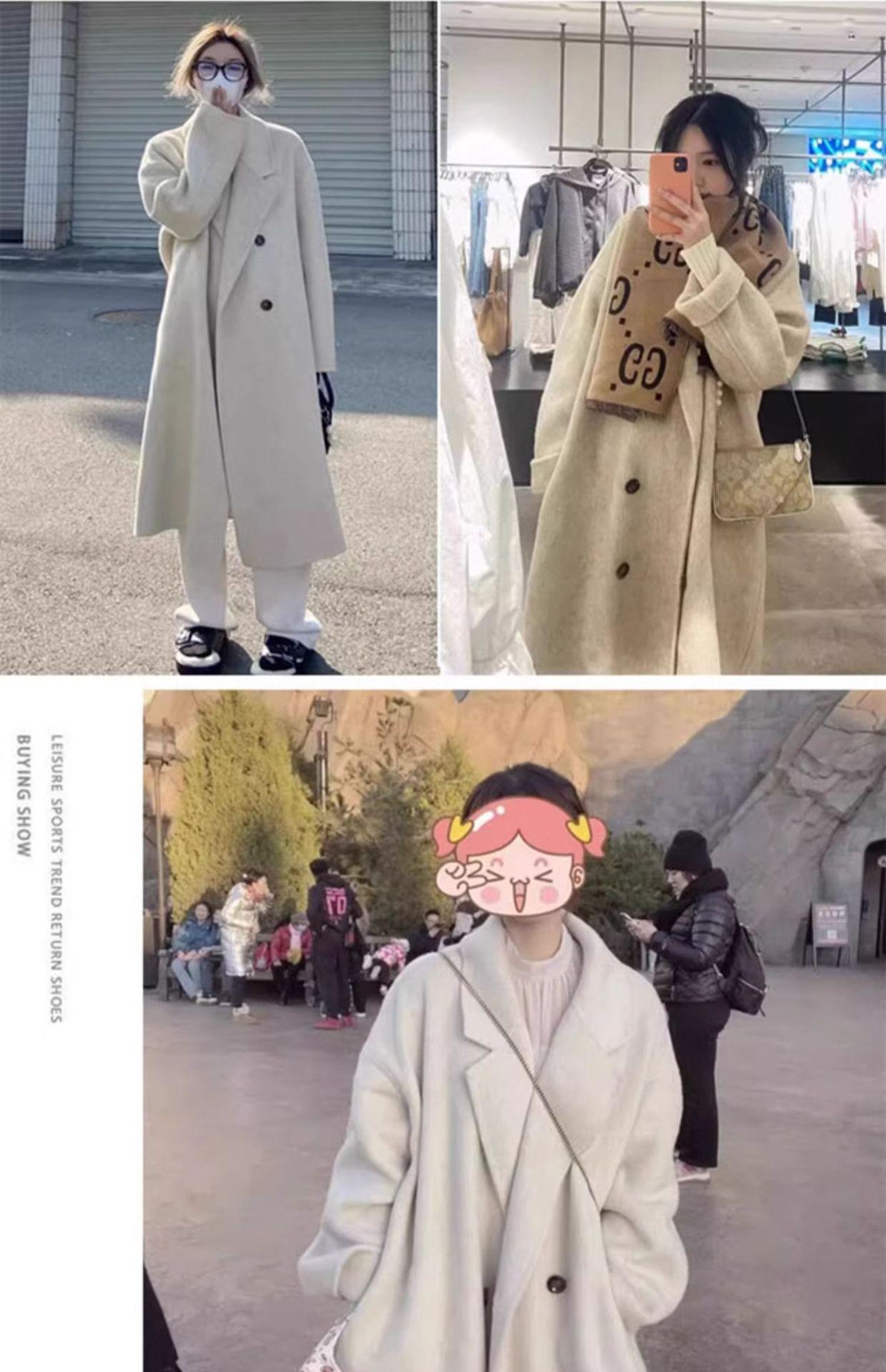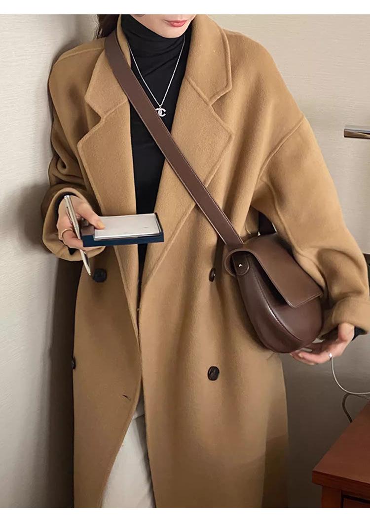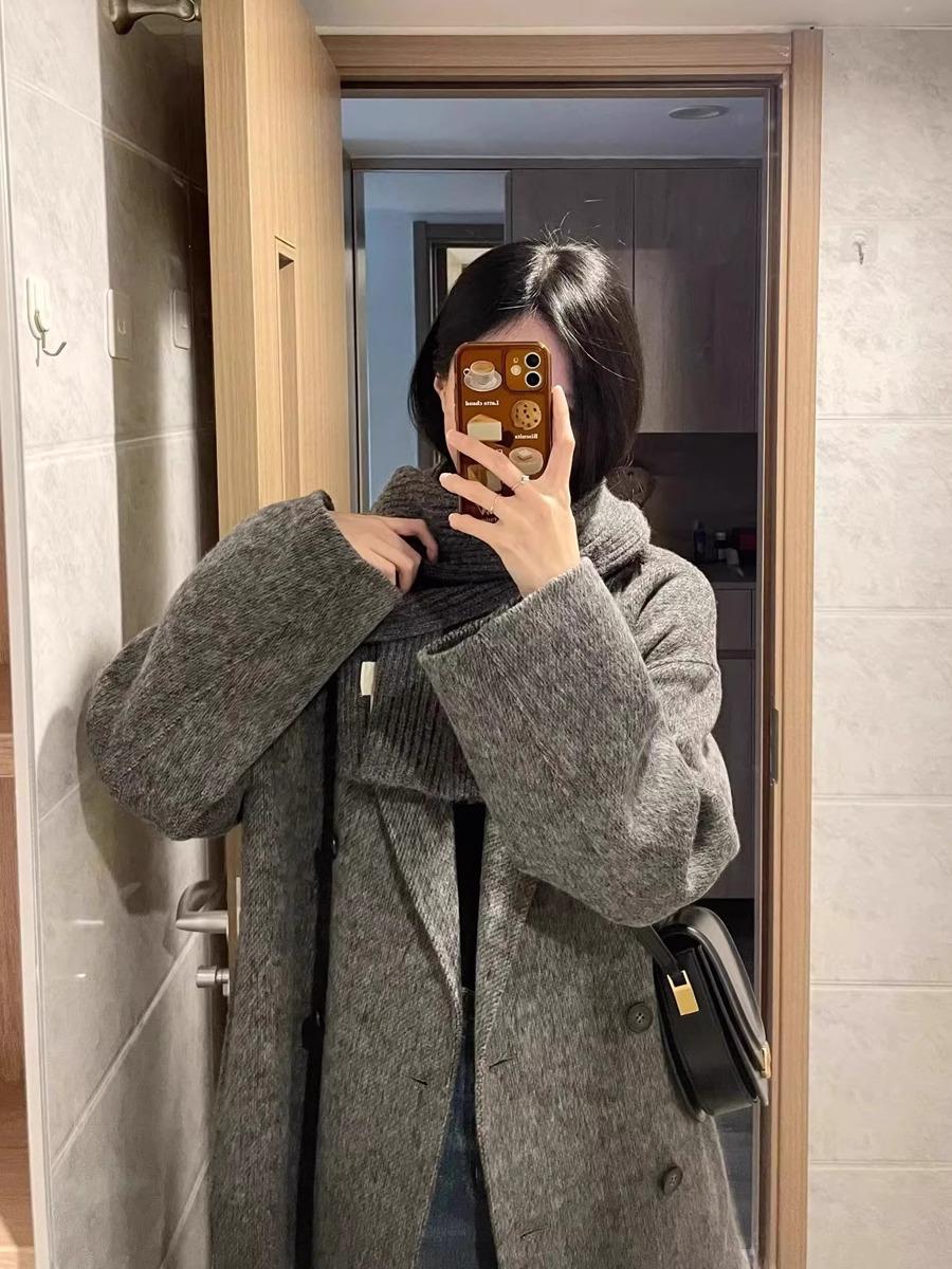 Casaco de Lã Caxemira Rosa para Mulheres, Estilo Longo, Novo Estilo Outono e Inverno 2024, Casaco de Lã Elegante Petite Estilo Coreano