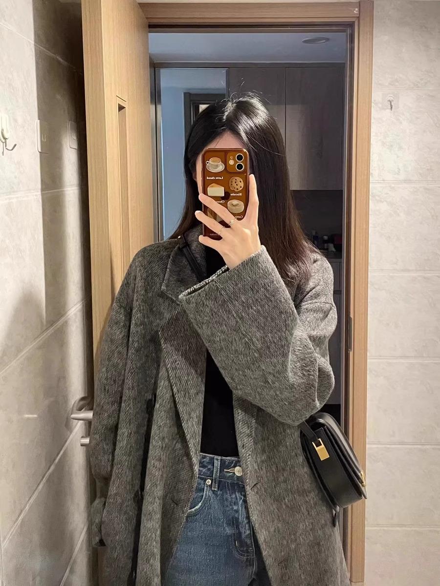 Salmon powder 6-grain buckle, Black 4-grain buckle, Oatmeal color 4 grain buckle, camel 4 buttons, Grey 4-grai...