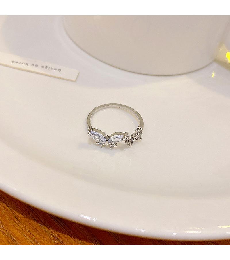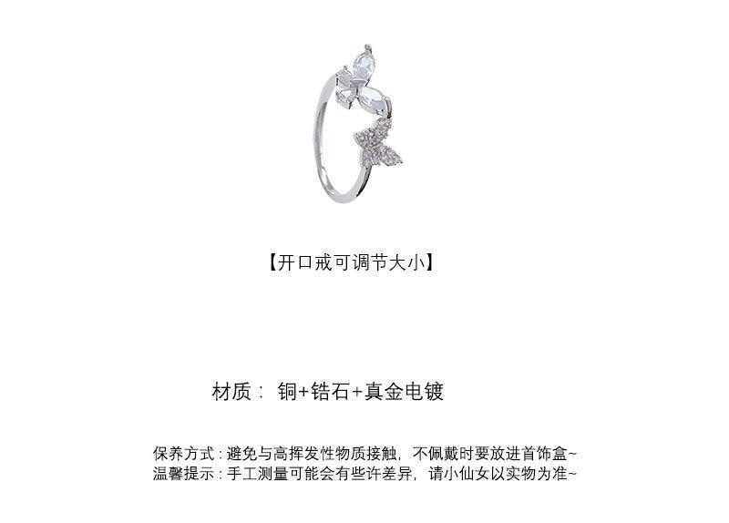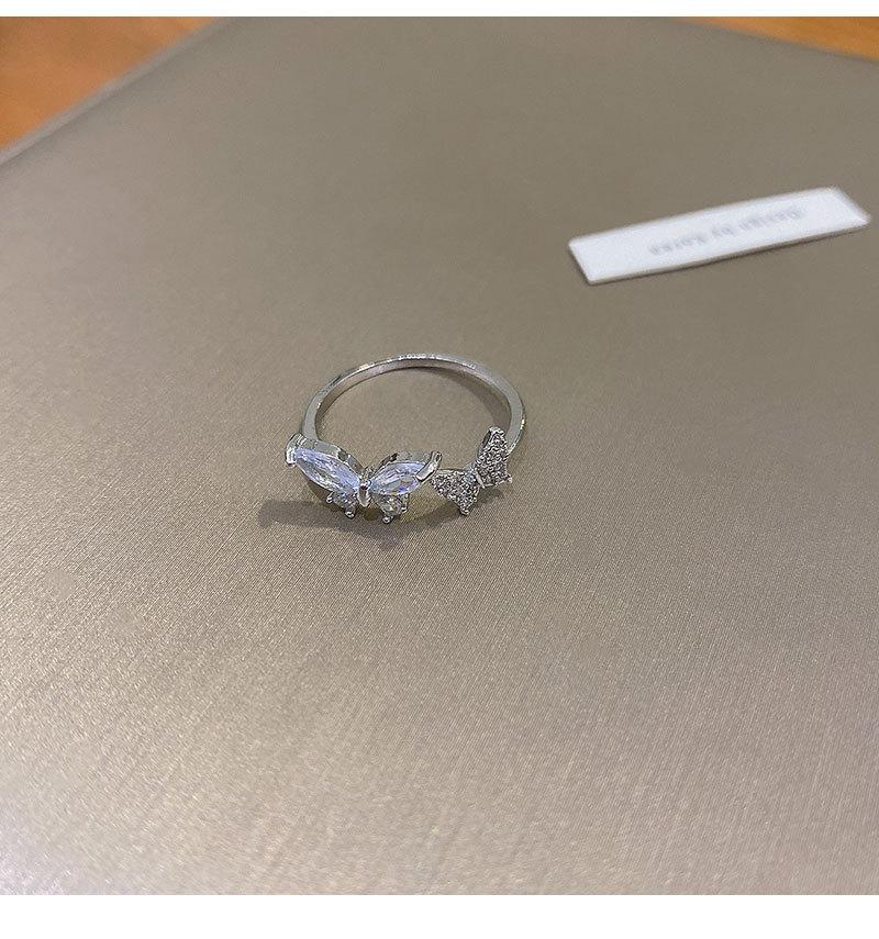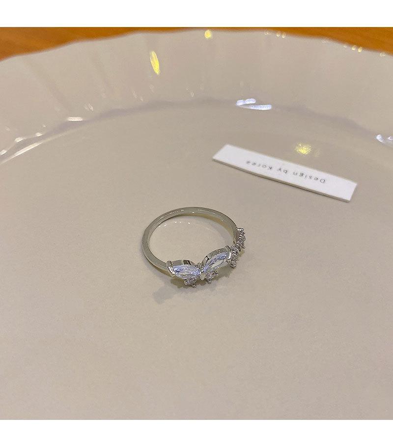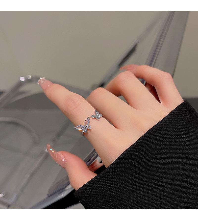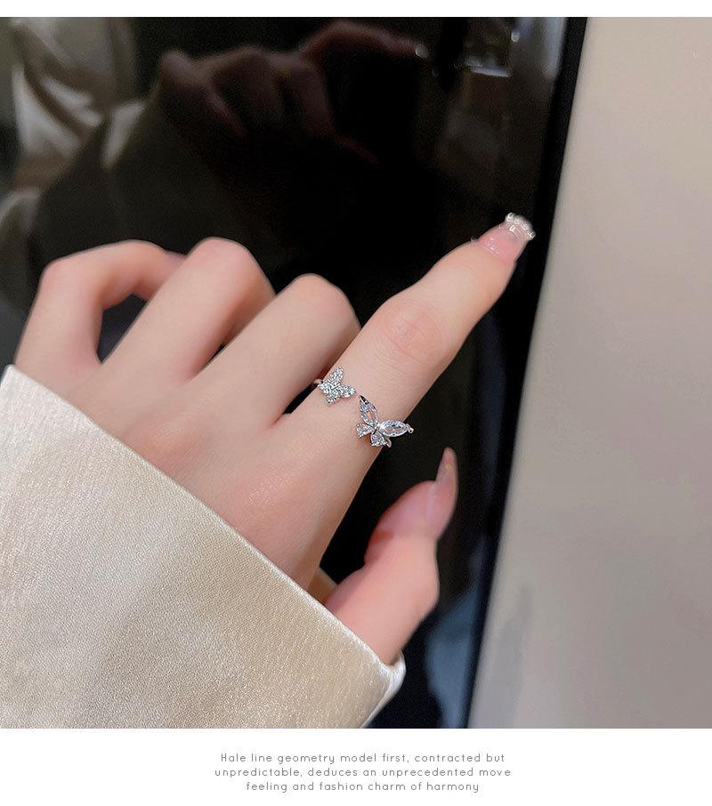 Anel Aberto de Zircônia Borboleta para Mulheres Estilo Ins Moda Personalizado Anel de Dedo Indicador Luxo Acessível Sofisticado Versátil Joia de Mão Atacado