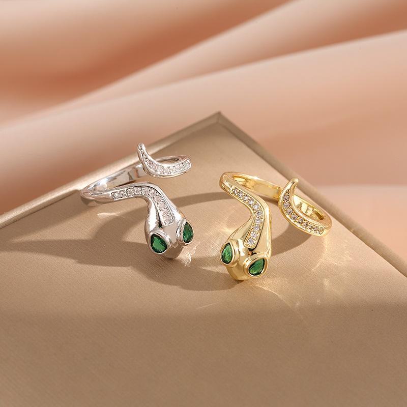 Anel de Cobra Olhos Verdes Estilo Neutro Tendência Anel Retrô Hip Hop Punk Diamante Anel de Cobra Pequeno Design com Senso de