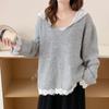 Costura de renda tricotado cardigã mulheres outono e inverno atmosfera francesa suave alto sentido suéter interior camisa inferior top