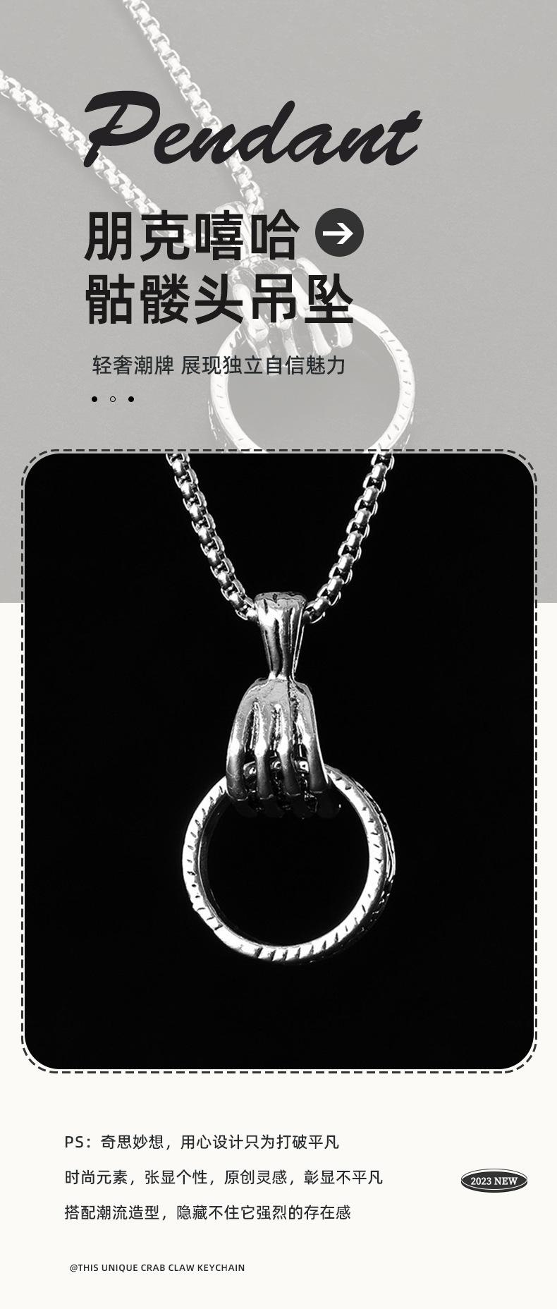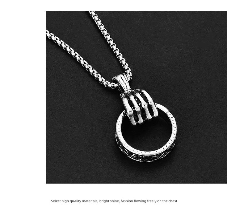 Europa e Estados Unidos cross-border novo esqueleto círculo mão pingente colar personalidade masculina street fashion hip hop longa cadeia de suéter