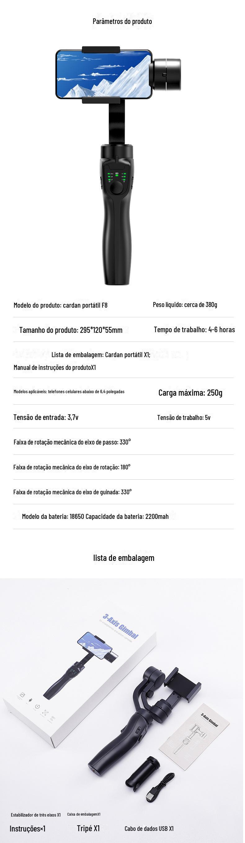 Gimbal para Celular Transfronteiriço F8 Estabilizador Portátil de Três Eixos Gimbal Anti-Vibração Sem Aplicativo Transmissão ao Vivo Gimbal para Selfie Fábrica