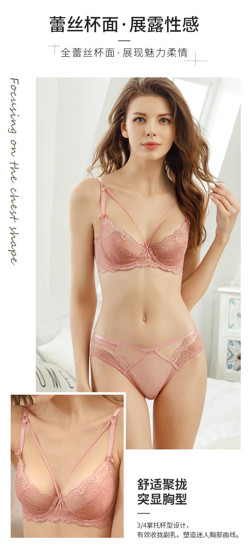 | Conjunto de roupa íntima de renda sexy, sutiã fino, peito grande, roupa íntima pequena, mulheres, desejo puro, sutiã respirável, conjunto de sutiã ultrafino |