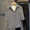 Houndstooth camisa homens manga curta verão fino casual casaco estilo bf moda marca solta de sete pontos manga camisa