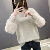 Suéter Solto 2024 Nova Moda Outono Renda Manga Longa Camisa Básica Gola Redonda Top Tricotado Suéter para Mulheres Usarem Fora