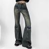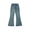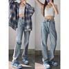 Calça Jeans Reta Slim Retrô Cor Clara para Mulheres Americana Elástica Slim High Street Arrastando no Chão Tubo Calça Longa Tendência