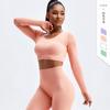 Grande Promoção Não Reembolsável e Não Trocável Roupas de Yoga de Primavera e Verão para Mulheres Tops Esportivos Justos de Manga Comprida Nude Roupas de Fitness com Fio Curto