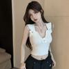 Western Girl's Metal Buckle Malha Camisole Feminino Spring Design Sense Nicho Hot Girl Top