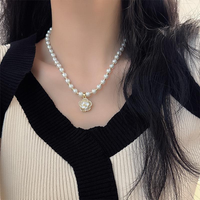 Camellia colar de pérolas Feminino Luz de luxo nicho design sentido de alta qualidade clavícula cadeia elegante Chanel estilo colar doce