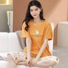 Primavera e verão novo algodão manga curta terno bonito desenho animado roupas para casa muffin urso casual lapela casal pijamas