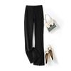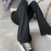 Calças Micro-Flare Pretas Femininas com Fendas, Ajuste Slim, Calças Compridas para Pessoas Baixas, Calças de Alfaiataria de Outono 2025 de Cintura Alta