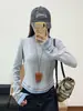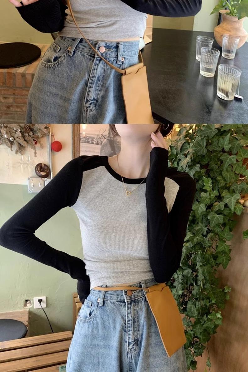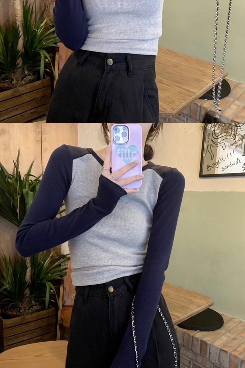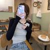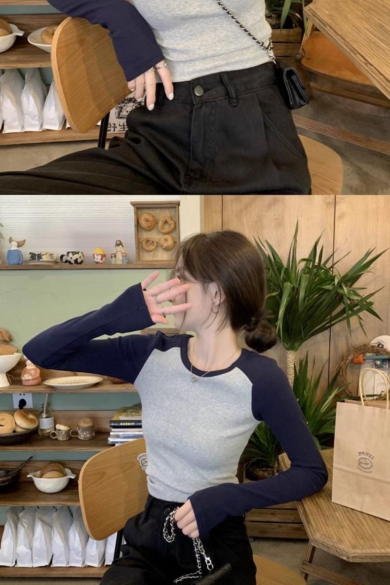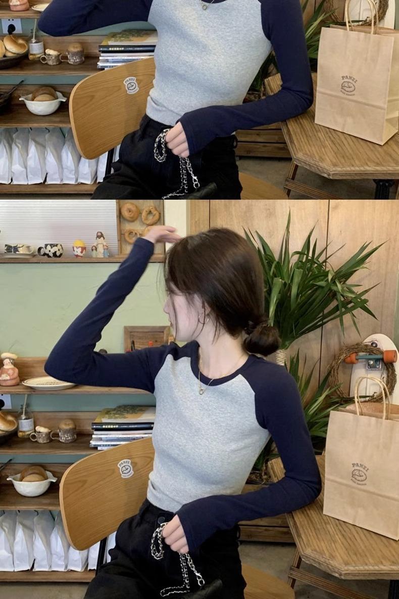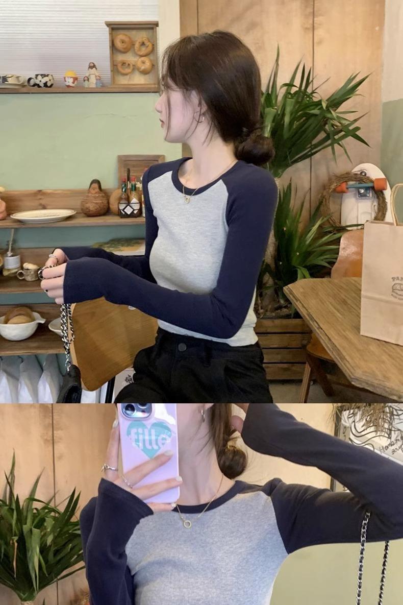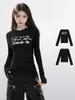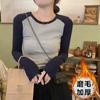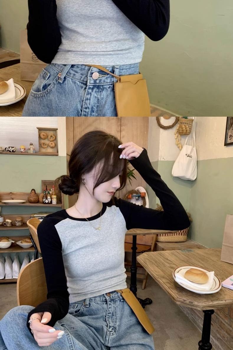 Estilo americano ombro retrô manga comprida camiseta feminina outono e inverno camisa de fundo interior hot girl slim-fit short top design sense