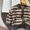 Suéter Infantil Outono/Inverno 2023 Novo Estilo Coreano Cardigã Tricotado Listrado para Meninos e Meninas Jaqueta Infantil Estilosa Estilo Coreano