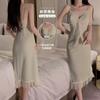 Guiruo cetim renda sling camisola mulheres de manga comprida renda-up camisola nupcial vestido de manhã vestido de casa roupa terno para 267