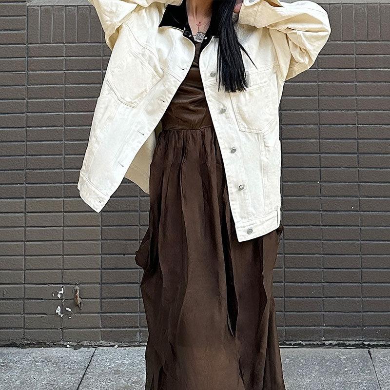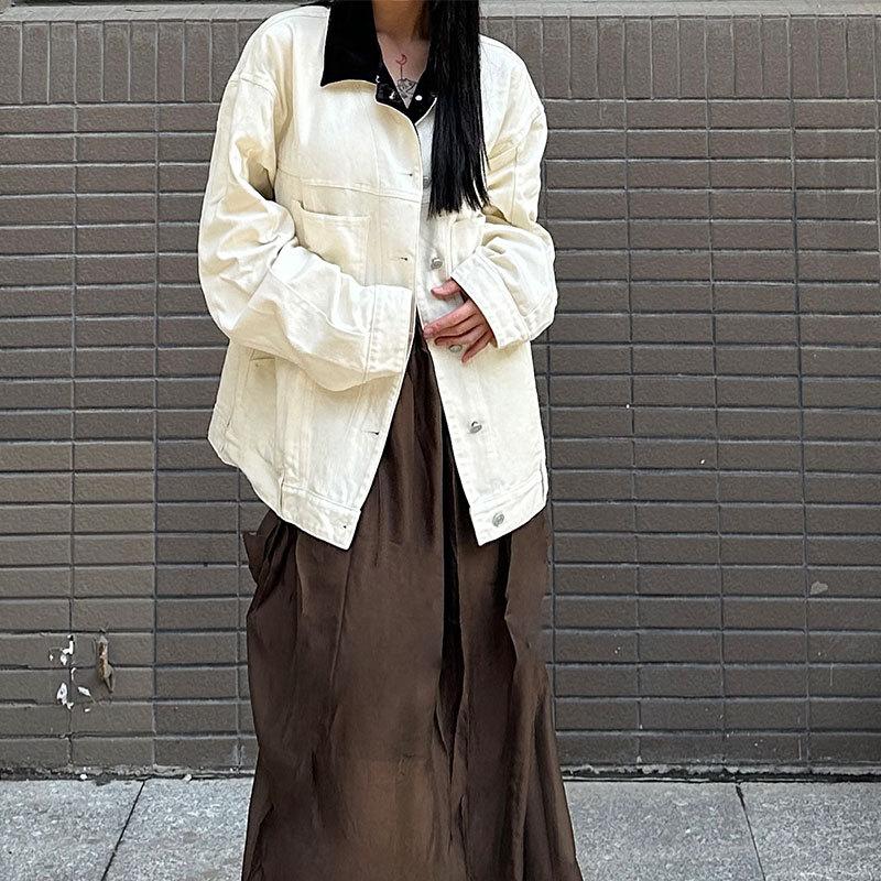 Liquidação Especial 2025 Início da Primavera Novo Retrô Cor de Contraste Lapela Jaqueta Jeans Feminina Branca Solta Não Aceita Devolução e Não Aceita Troca