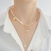 Colar de pérolas de água doce com corrente de diamante e borla de amor, design versátil, temperamento, corrente de clavícula, colar doce