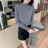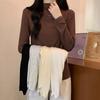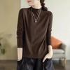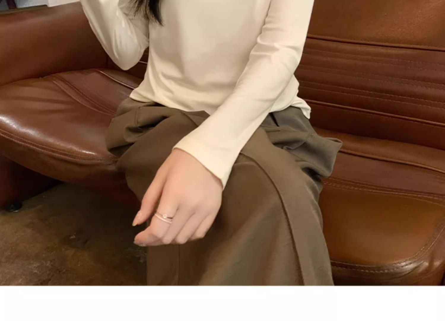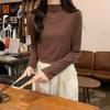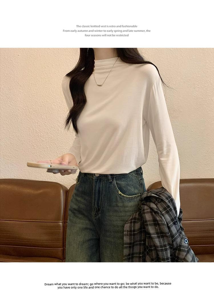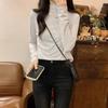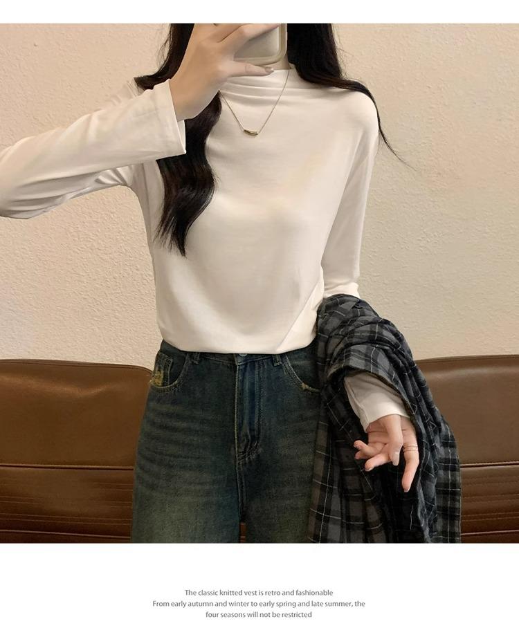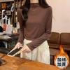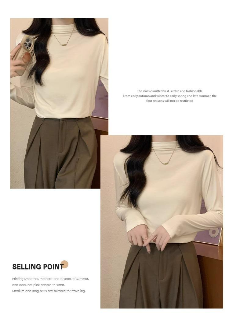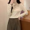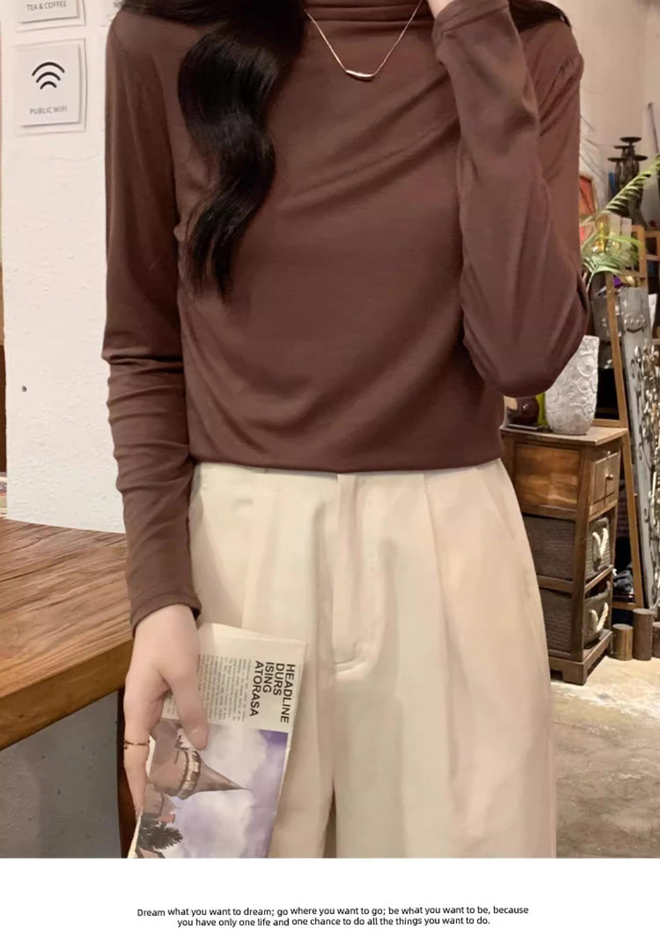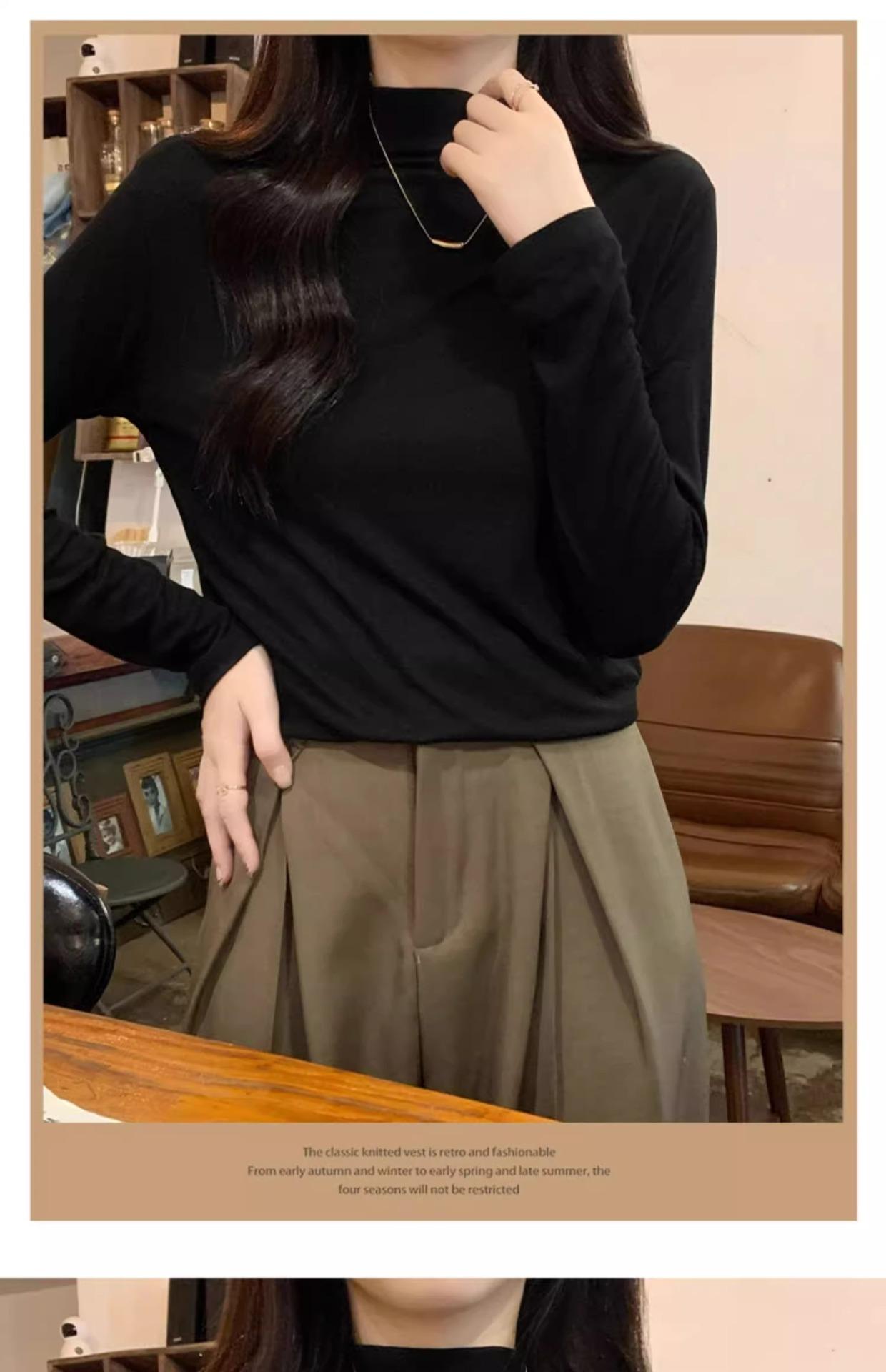 Camiseta de Gola Alta Francesa Forrada com Lã Espessa para Outono e Inverno Aparência Slim de Manga Longa Top Interno