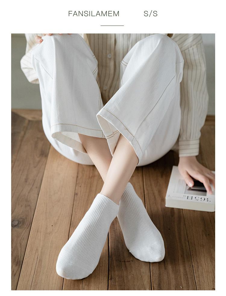 Meias Femininas Primavera e Verão Desenhadas Meias Curtas Femininas Estilo Japonês Duplo Agulha Tornozelo Comprimento Mulheres Barco Meias Base Cor Sólida Meias de Algodão