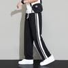 Calças de perna larga e retas masculinas, verão 2025, nova chegada, calças esportivas listradas soltas, seda gelo, finas, respiráveis, para todos os tipos de emagrecimento