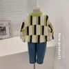 Vale do Vento 2023 Primavera Novo Suéter de Cor Contrastante de Estilo Coreano para Crianças Malhas de Padrão Geométrico na Moda