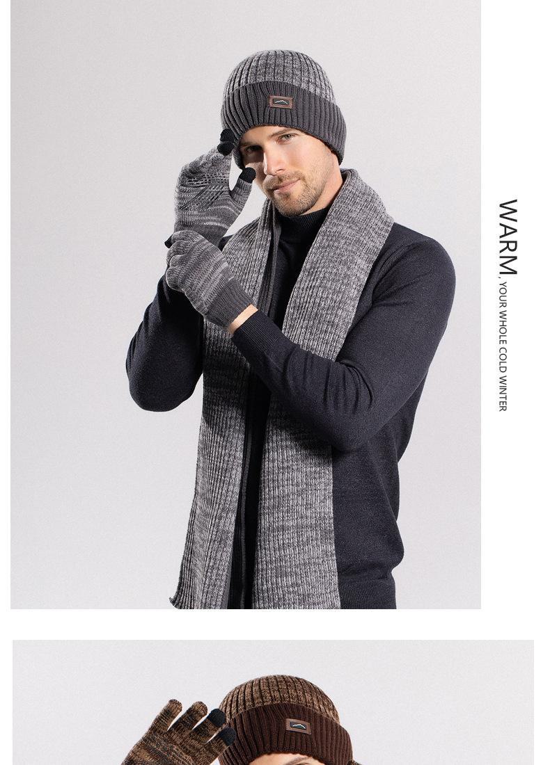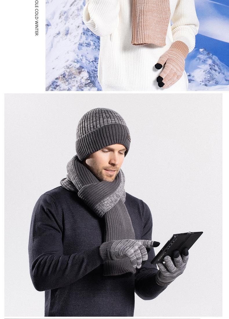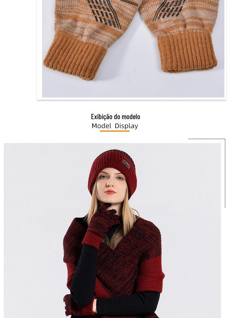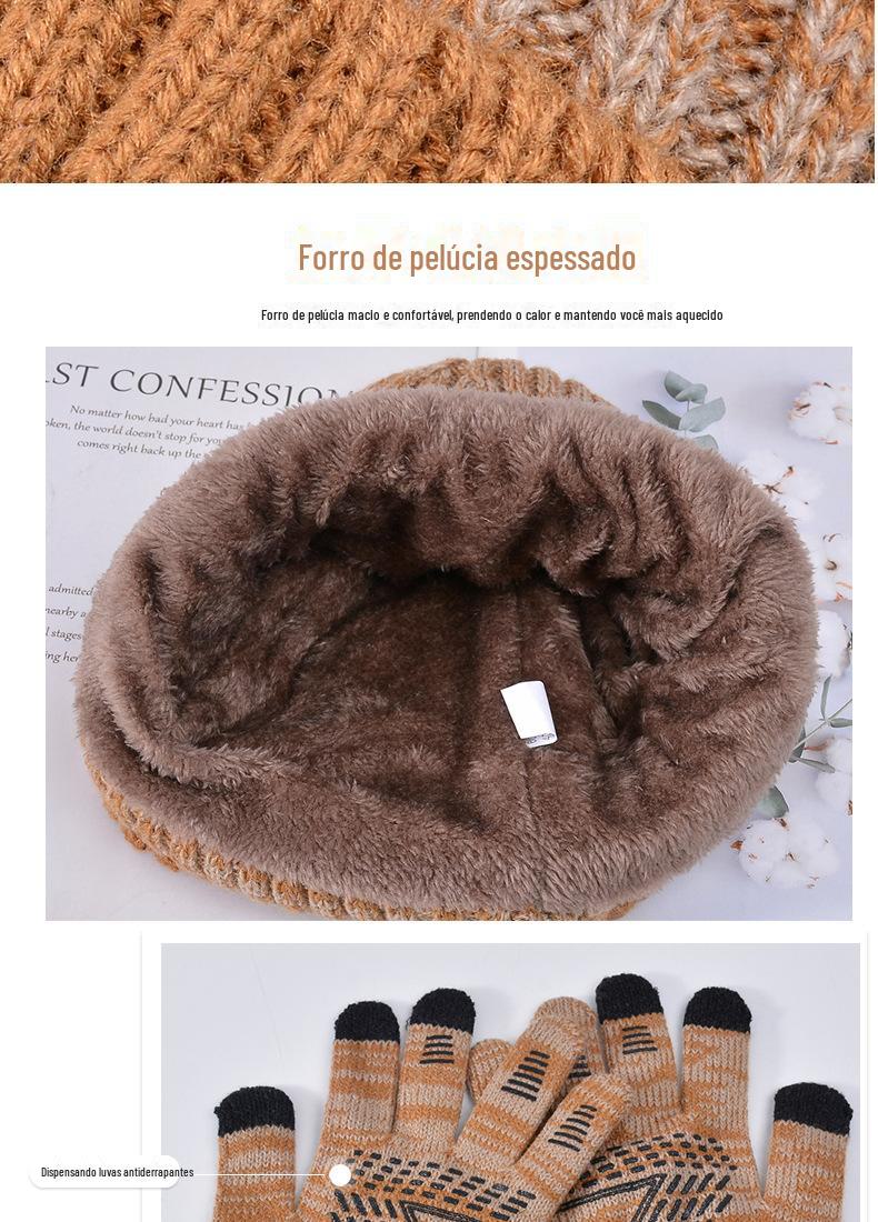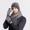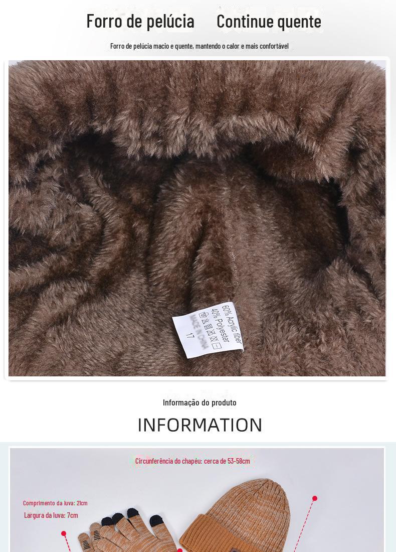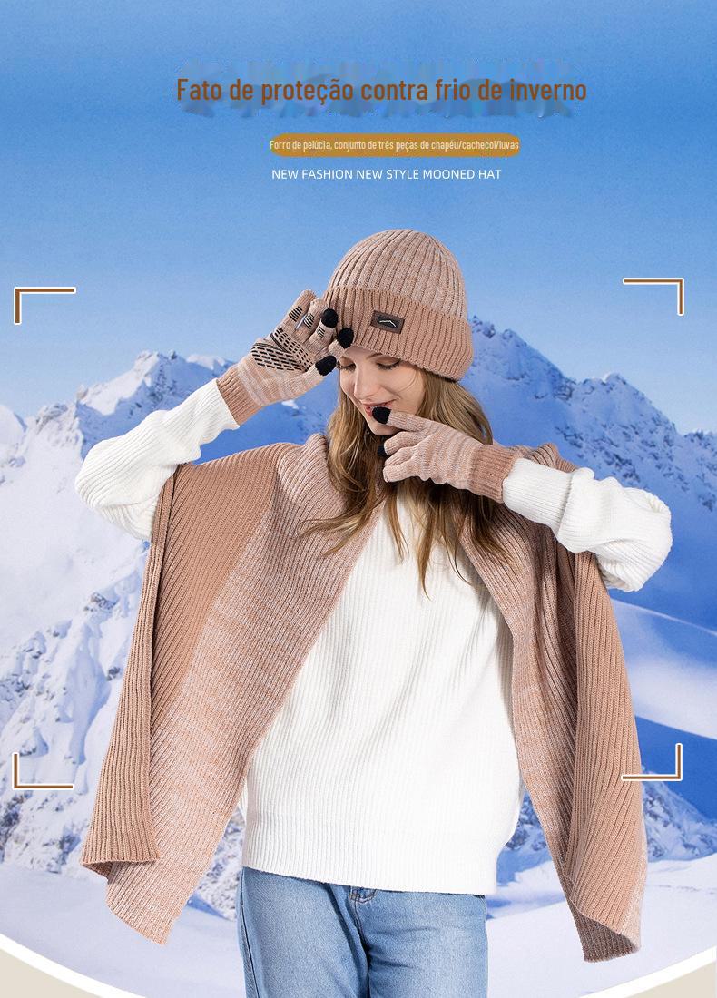 8397 Conjunto de Três Peças Chapéu, Luvas e Cachecol para Homens Transfronteiriço Inverno Exterior Forrado com Lã Quente Proteção de Orelhas Gorro de Lã Tricotado para Mulheres