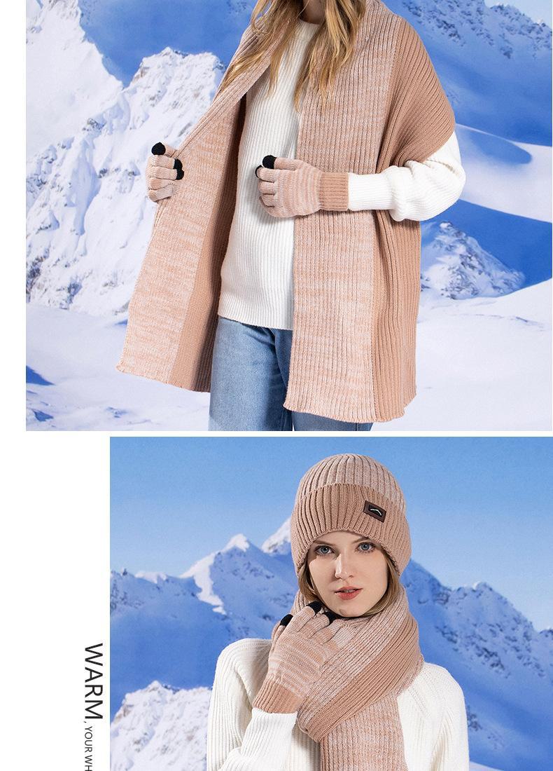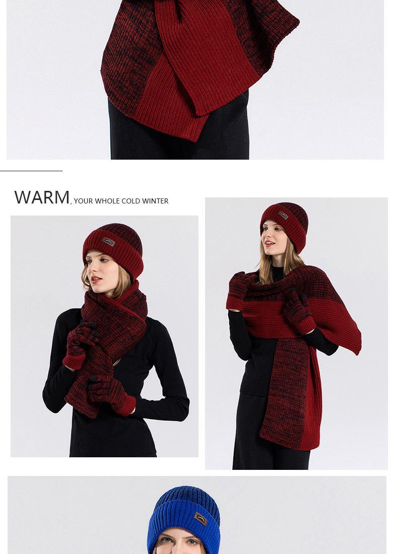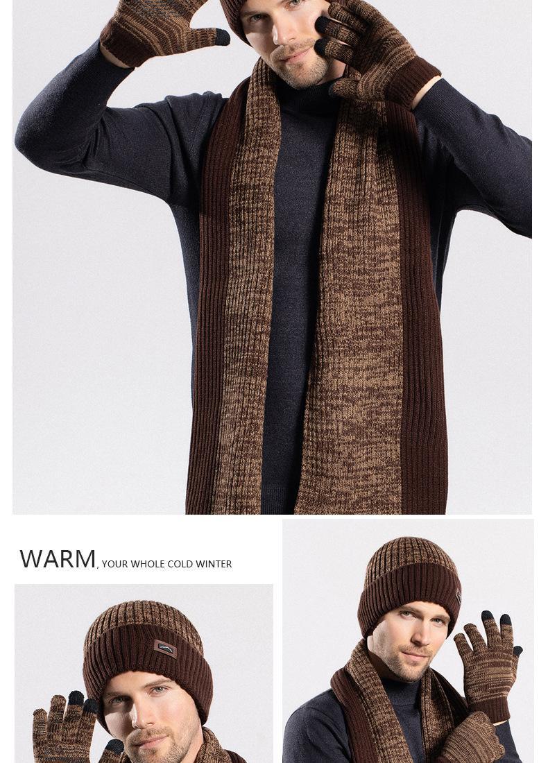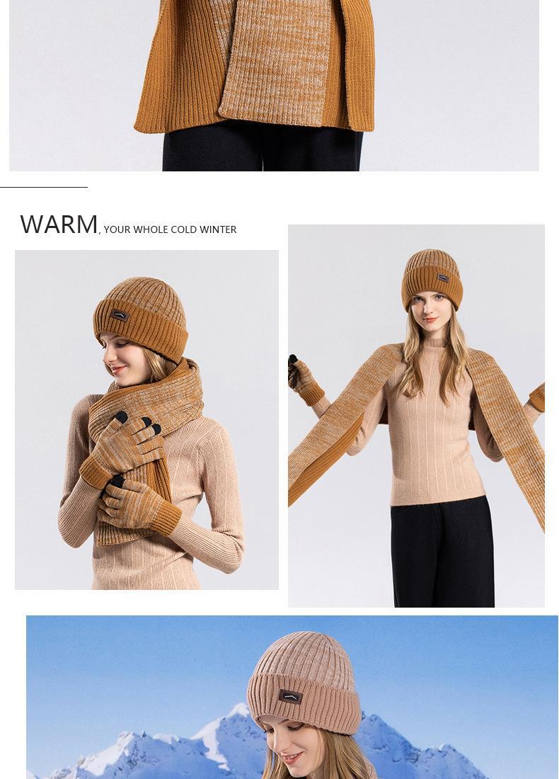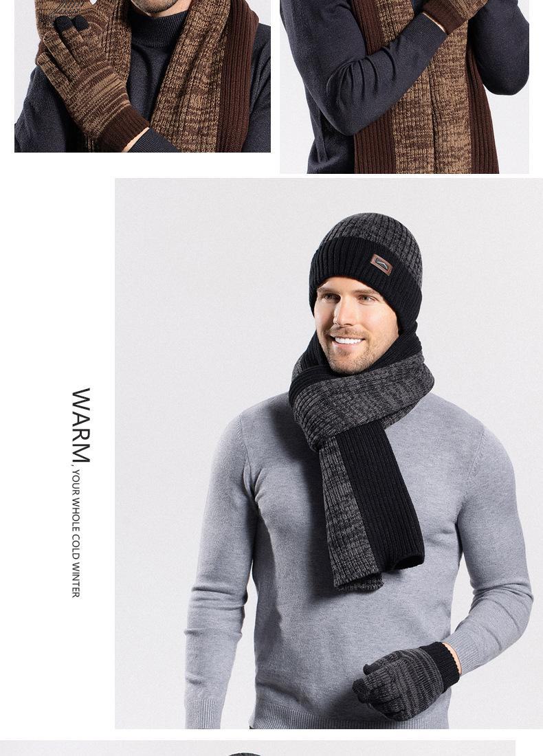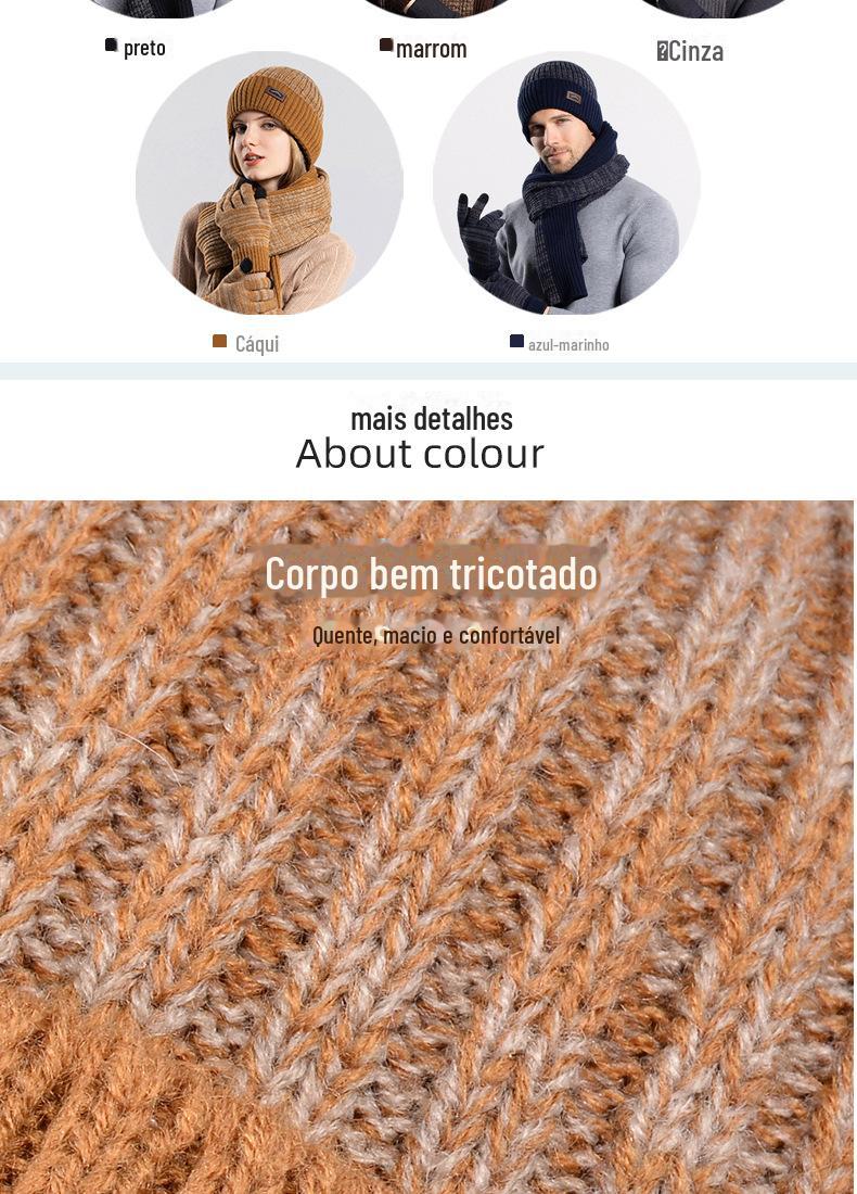 8397 Conjunto de Três Peças Chapéu, Luvas e Cachecol para Homens Transfronteiriço Inverno Exterior Forrado com Lã Quente Proteção de Orelhas Gorro de Lã Tricotado para Mulheres