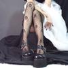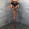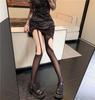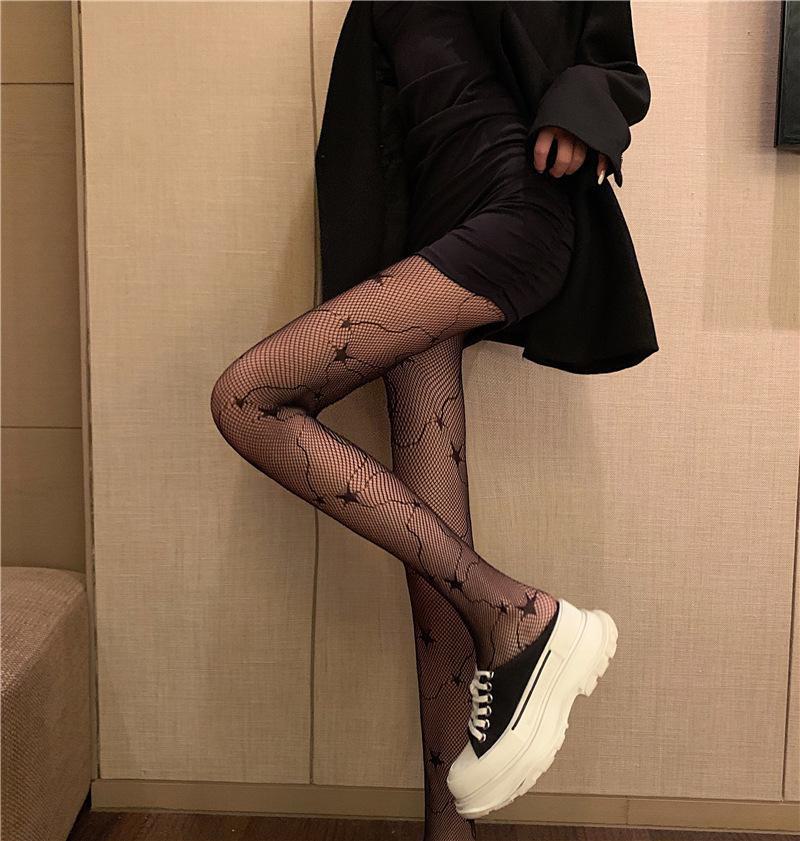 Meias Pretas Sexy Meias Pretas Letras Europeu e Americano Tamanho Grande Tentação Ins Recorte Laço Meias de Rede Meias para Usar por Baixo