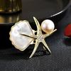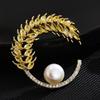 Novo broche de orelha de arroz com pérolas de água doce natural, broche de luxo de alta qualidade com microincrustações de zircônia, acessórios para terno e casaco