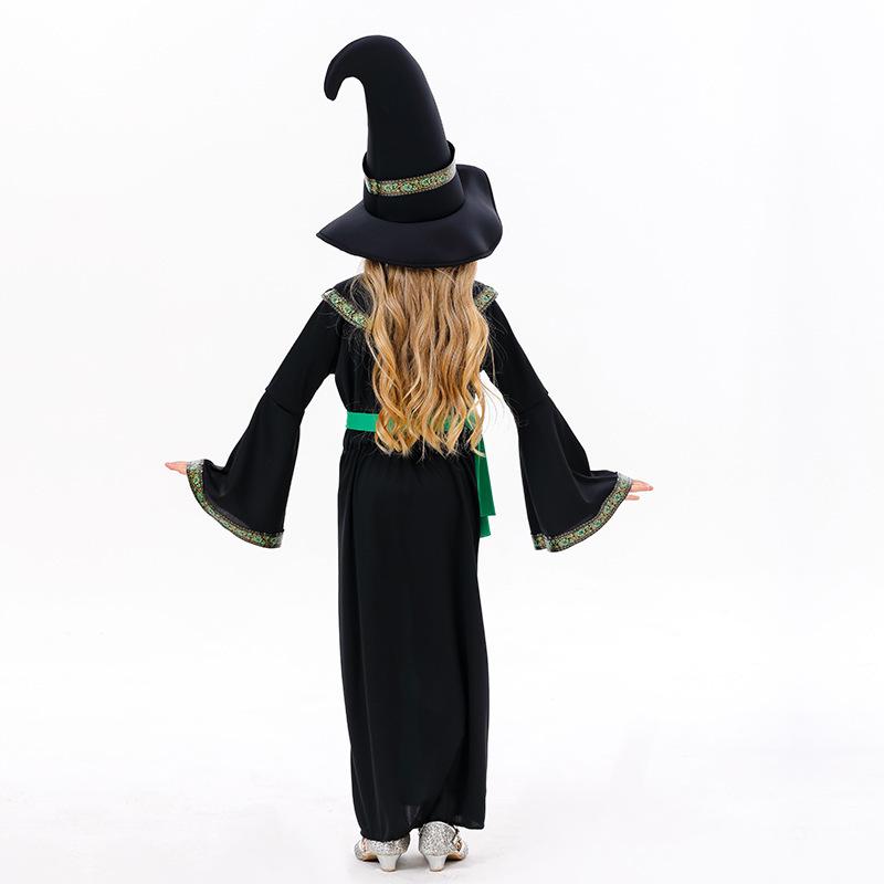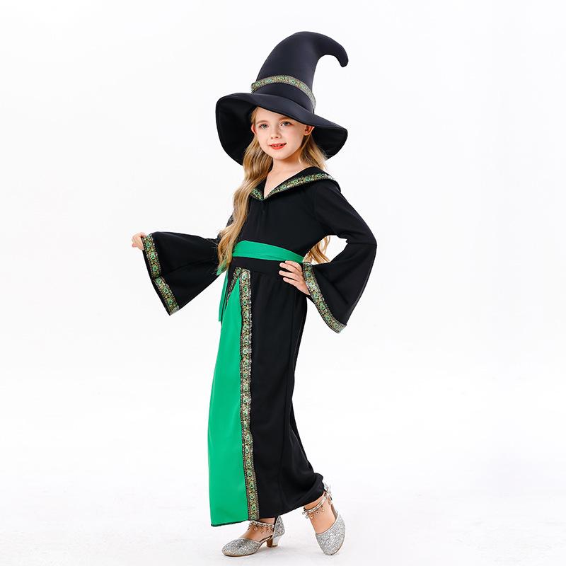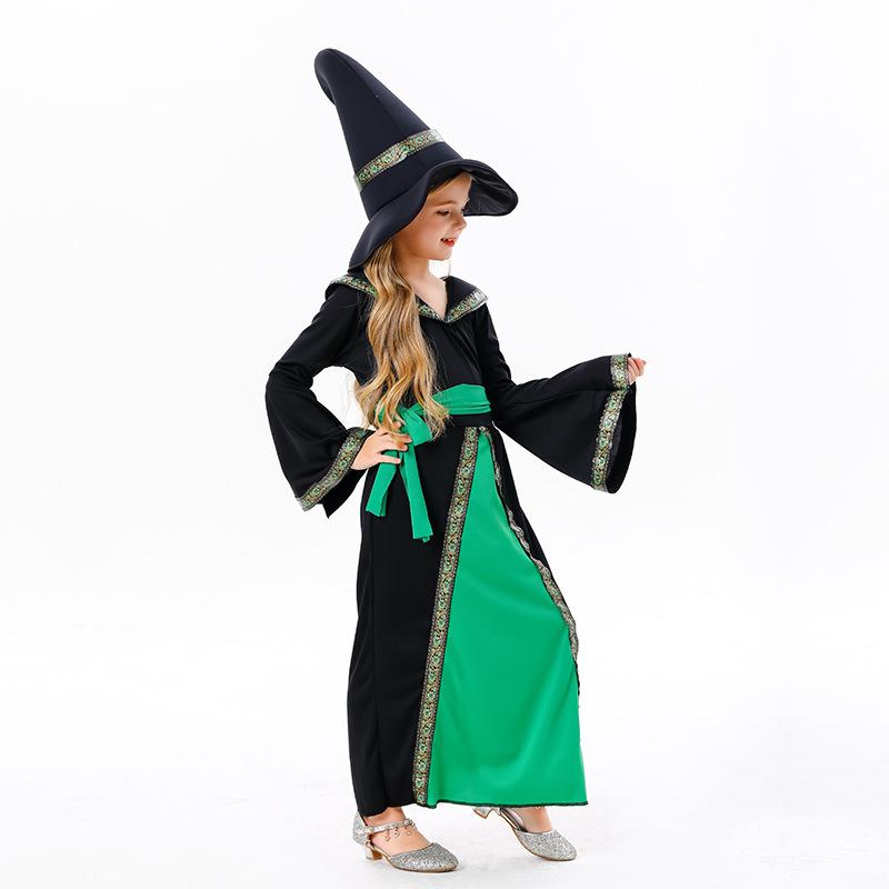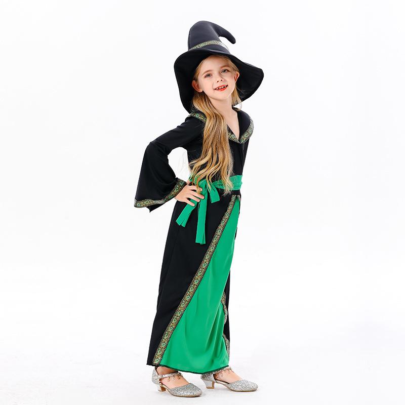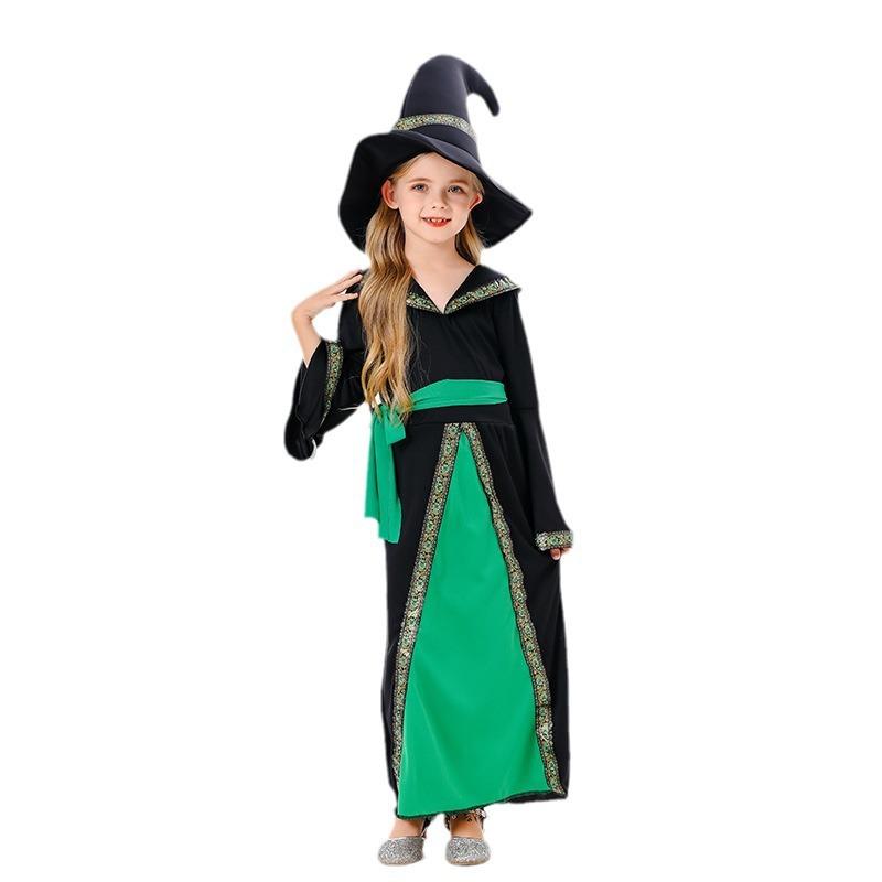 Fantasia de Bruxa Cosplay Transfronteiriço de Halloween Role-Playing Vestido Longo de Vampira Verde Infantil Fantasia Europeia e Americana