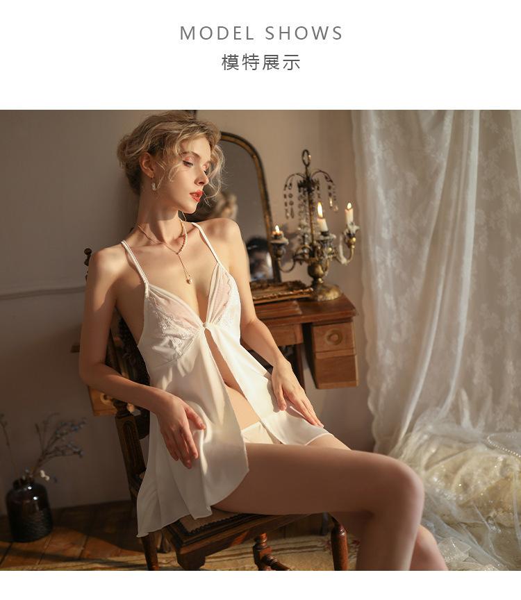 Camisola Feminina Sexy Transparente de Alças Nova da Yiying com Saia Assimétrica e Pijama Sexy Decote V Profundo Dropshipping