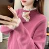 Suéter feminino de gola alta engrossado 2023 outono e inverno Nova manga comprida roupa exterior tricotada folgada interior estilo ocidental camisa inferior