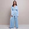 2022 outono e inverno novo cetim gelo seda terno estilo europeu e americano cross-border lazer comutador terno manga longa calças conjunto de duas peças