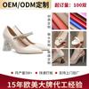 Processando e Personalizando Novos Saltos Altos de Banquete Estilo Europeu e Americano, Fivela de Pérola de Uma Linha, Salto Alto Grosso Feminino, Feito Sob Encomenda