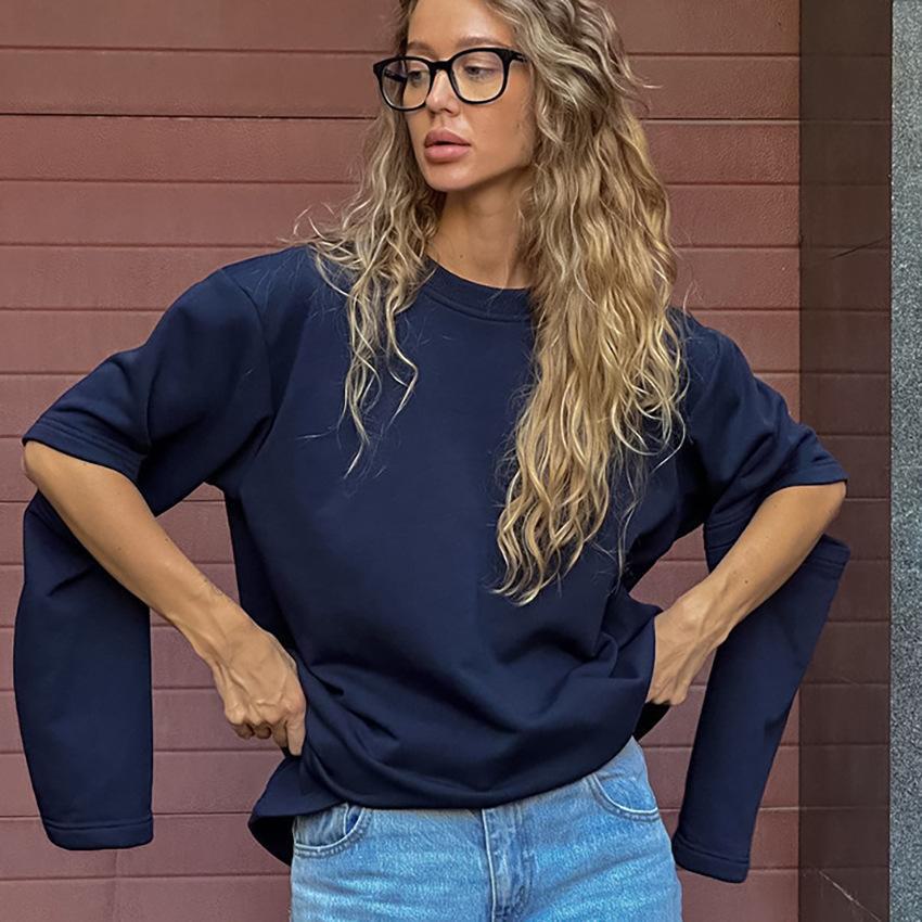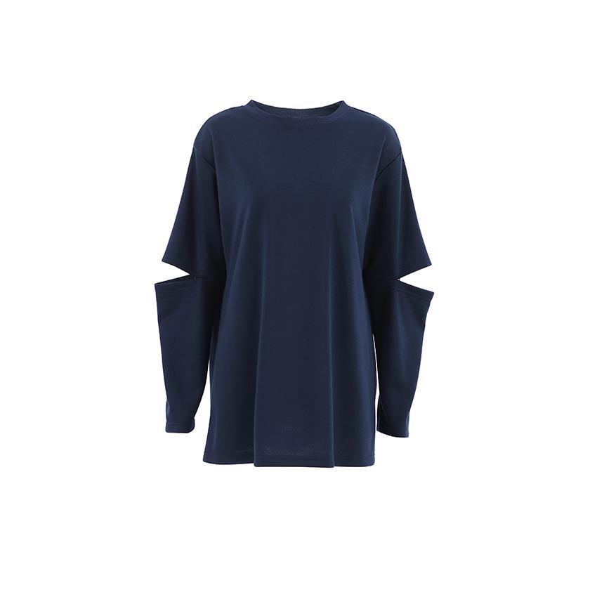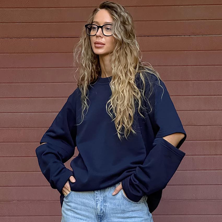 Suéter de malha pescoço redondo Design oco feminino casual solto transfronteiriço europeu e americano 2023 outono e inverno Novo Simples