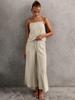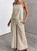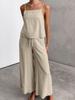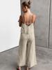 Terno casual europeu e americano de renda de algodão e linho sem costas 2025 primavera e verão novo sexy all-match exclusivo sem mangas calças largas para mulheres
