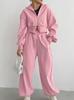 Outono e inverno Novo suéter forrado de lã forrado de lã cintura alta calça reta terno conjunto de duas peças 2023 amazonense mulheres de transporte esportivo