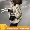 Casaco de Inverno, Casaco Xadrez/Gola Quadrada Jaqueta Curta Doce