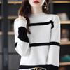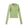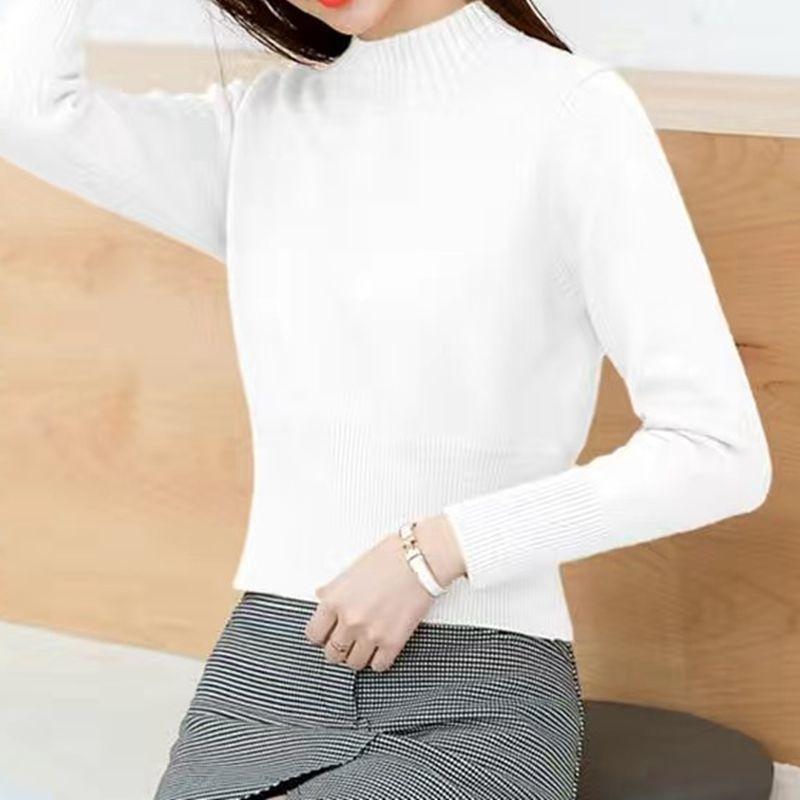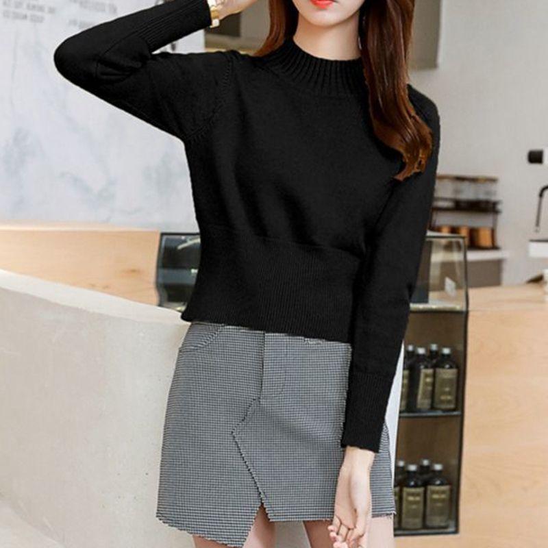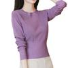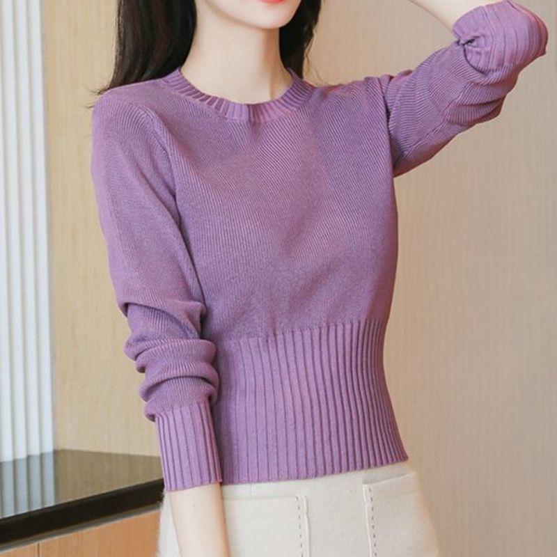 Tricô de Manga Comprida de Outono para Mulheres Cor Pura Slim Cintura Alta Pulôver Curto Versátil Gola Redonda Tricô para Usar por Baixo