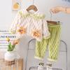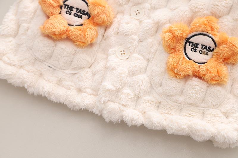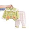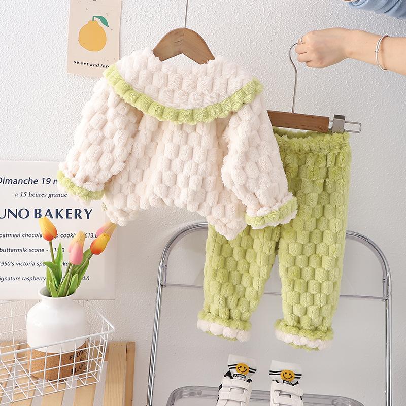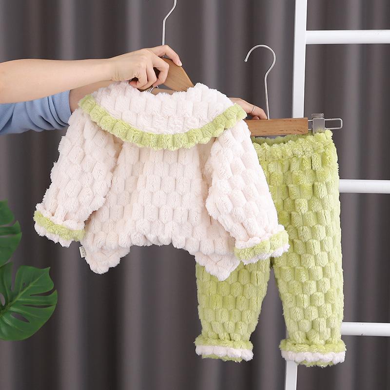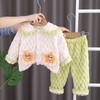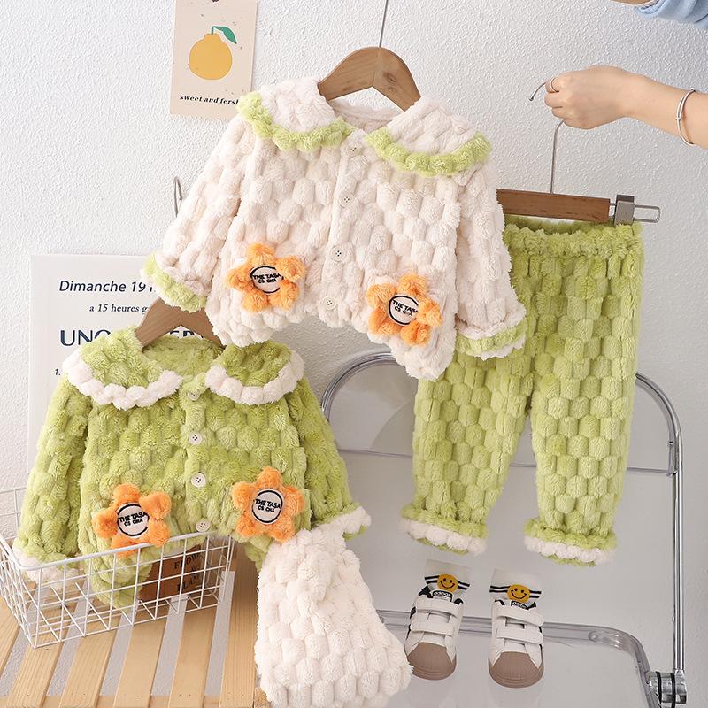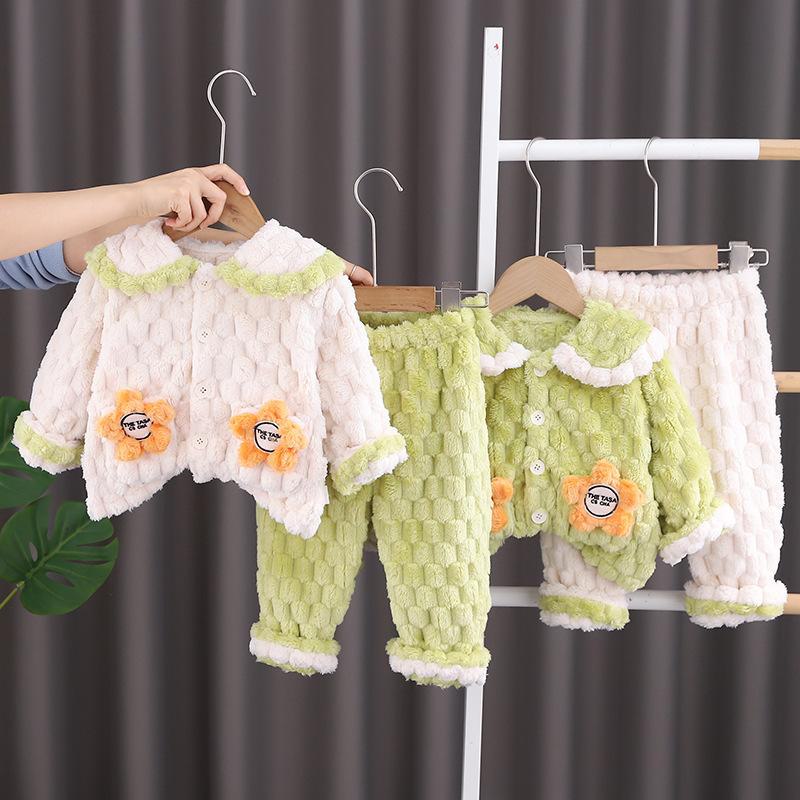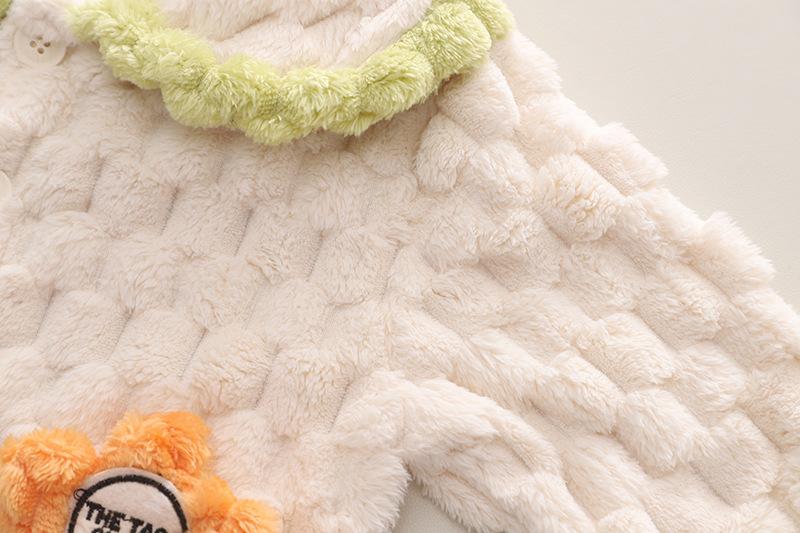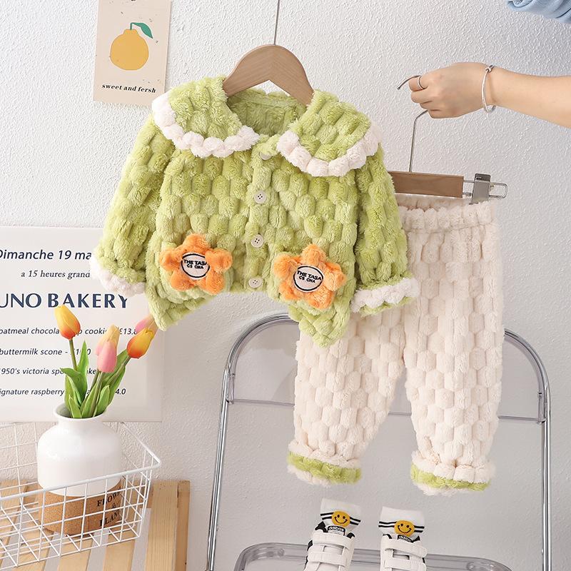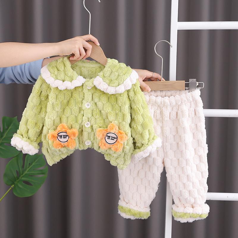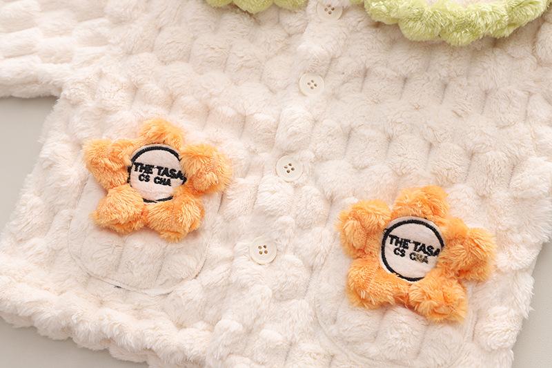 Estilo coreano crianças forrado de lã colar de boneca flor pijamas conjunto de duas peças de um ano de idade bebê menina quente outono e inverno fábrica atacado