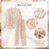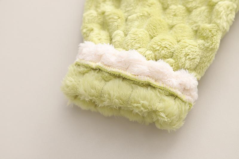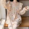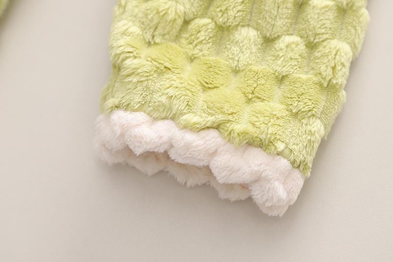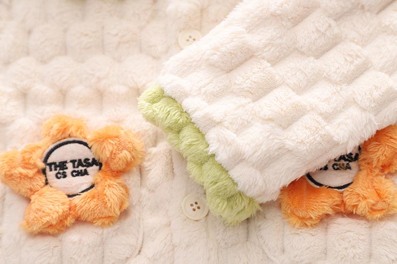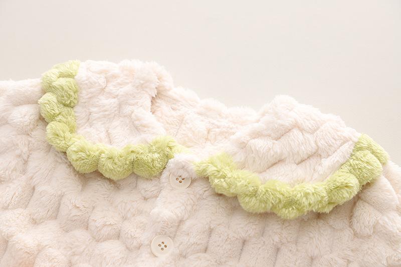 Fleece-lined doll collar flower pajamas suit beige, Fleece-lined doll collar flower pajamas suit Green