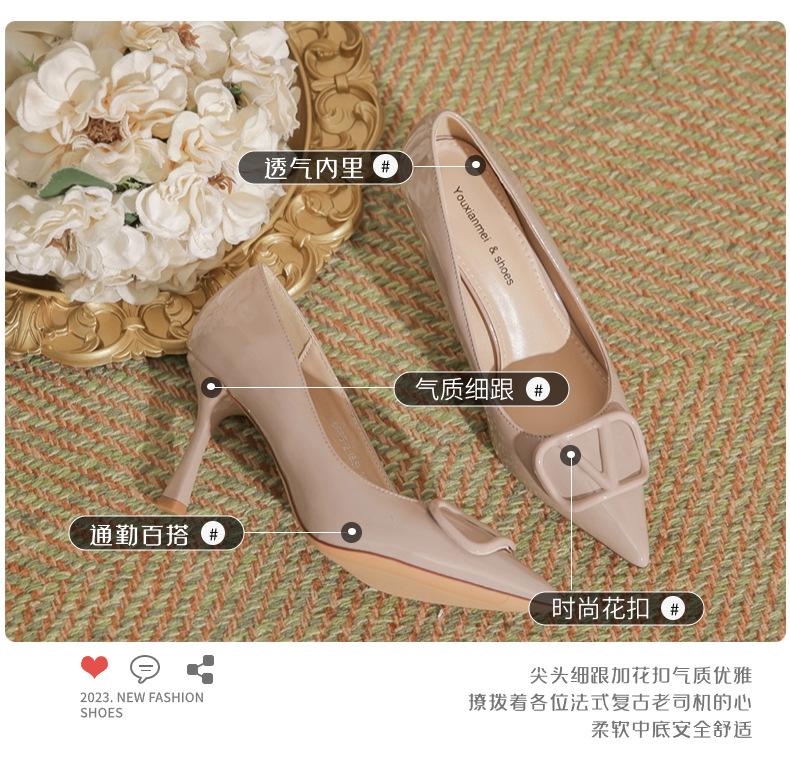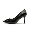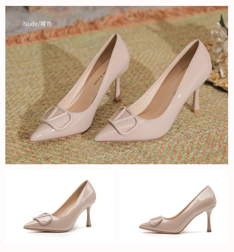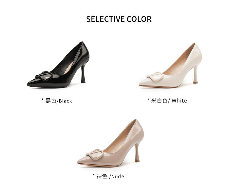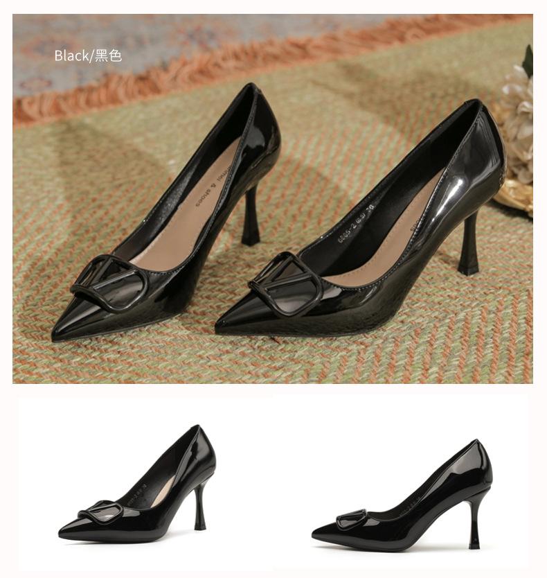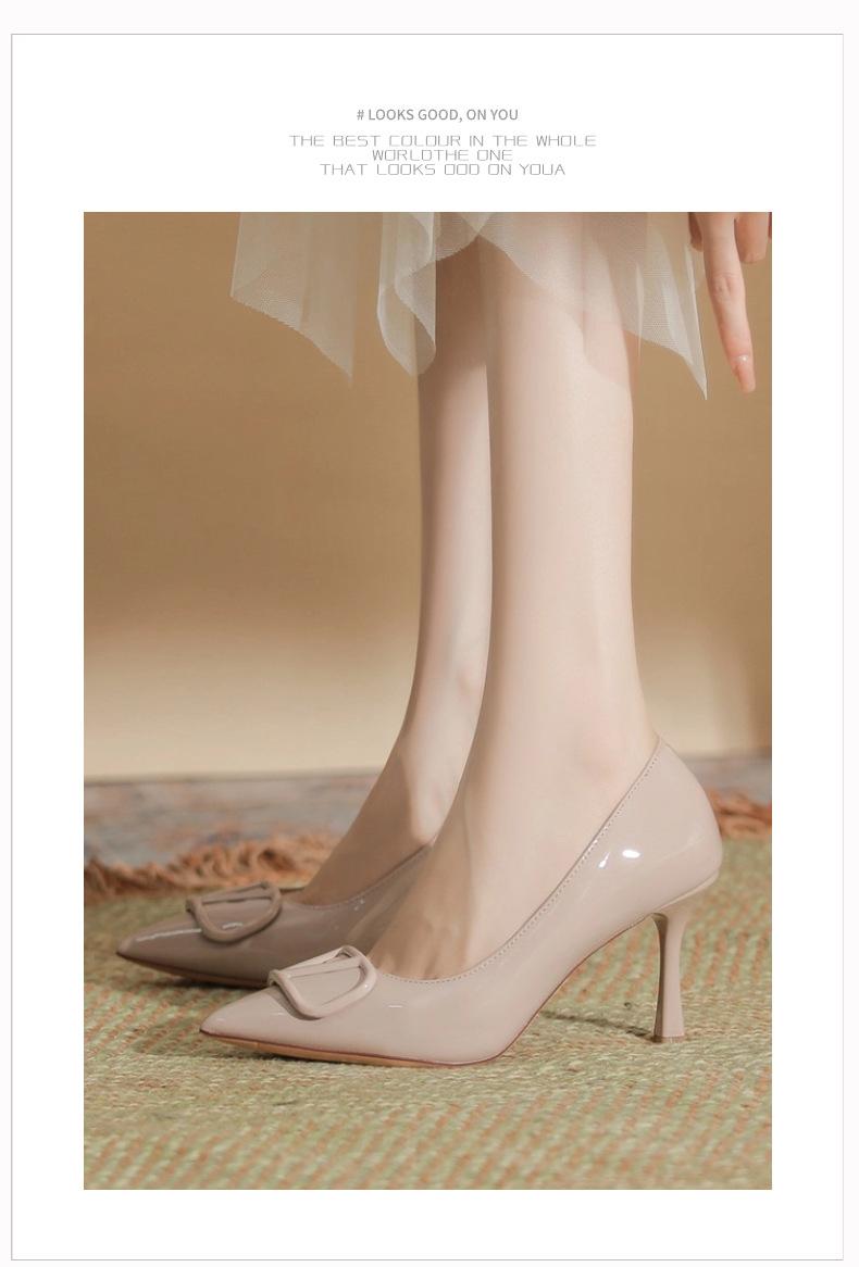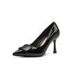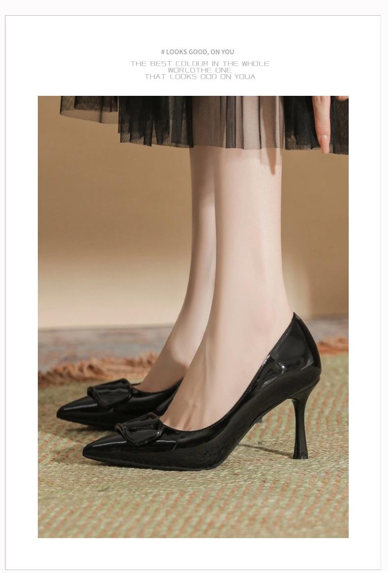 6685-2-053 Salto Alto de Bico Fino e Boca Baixa com Fivela de Flor, Sapatos Elegantes Femininos para Roupa de Trabalho Diária, Elegante, Confortável e Versátil