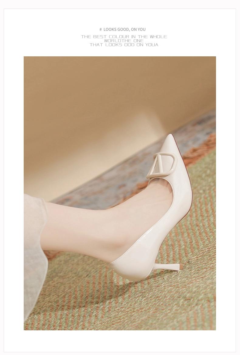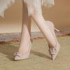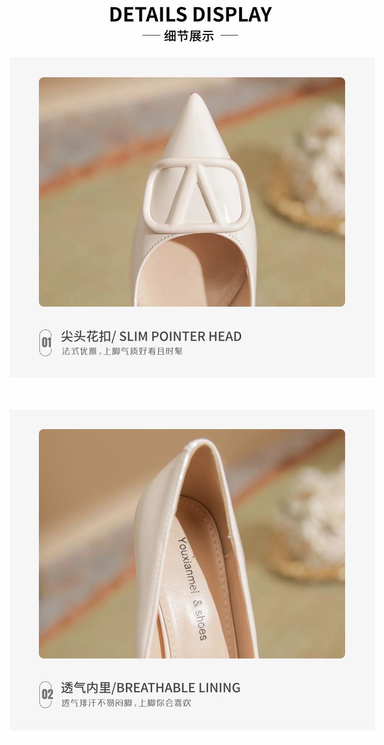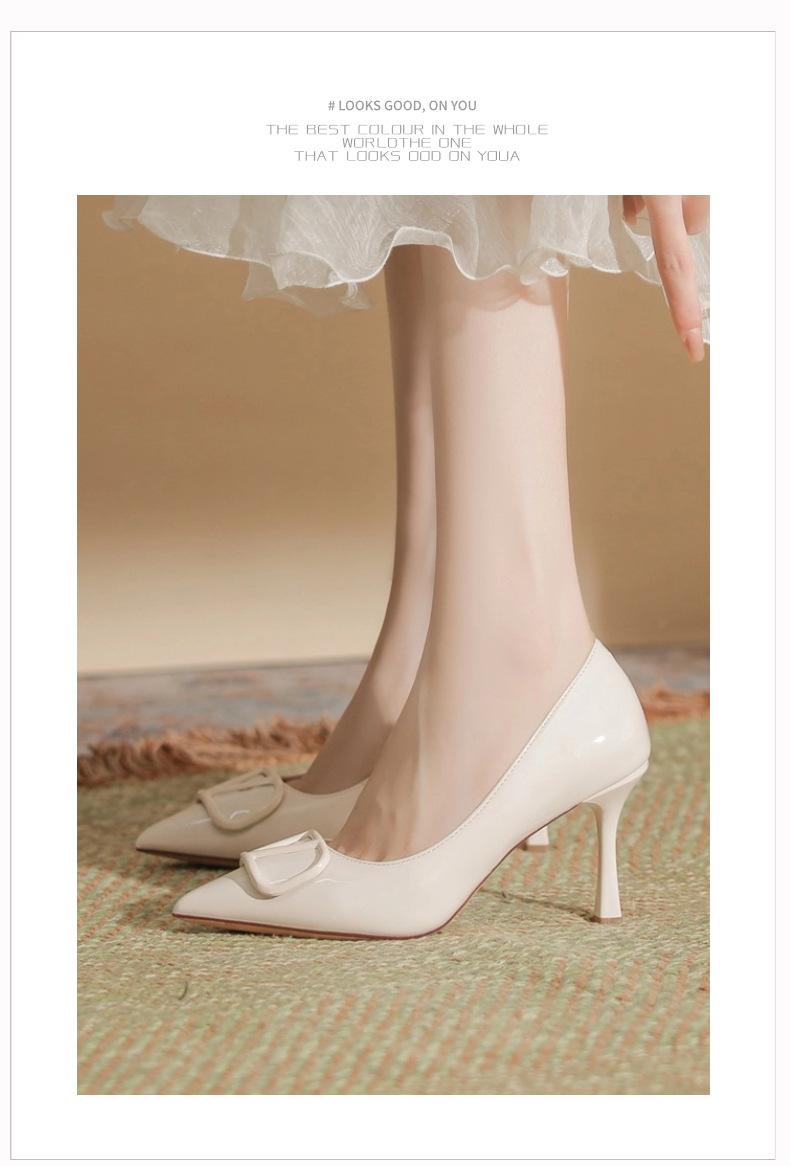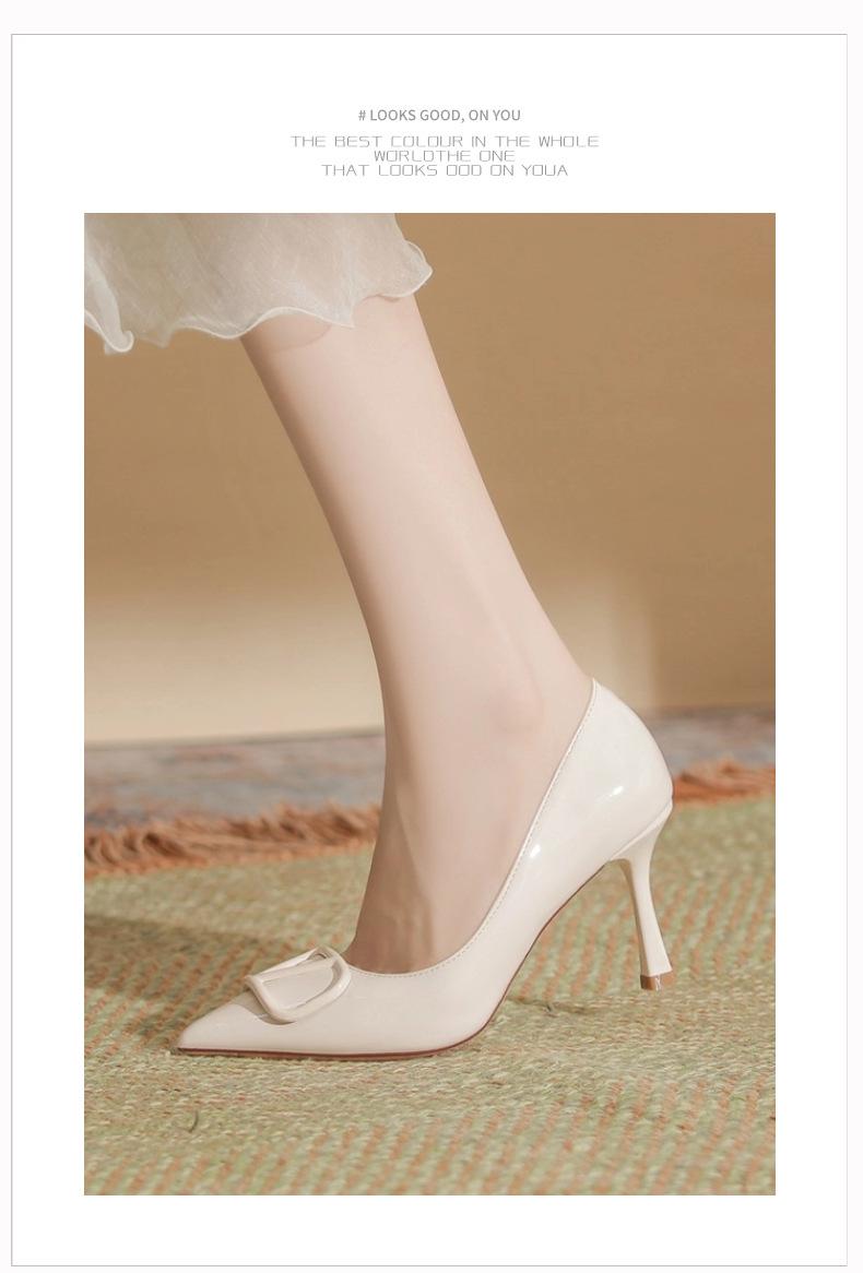 6685-2-053 Salto Alto de Bico Fino e Boca Baixa com Fivela de Flor, Sapatos Elegantes Femininos para Roupa de Trabalho Diária, Elegante, Confortável e Versátil