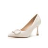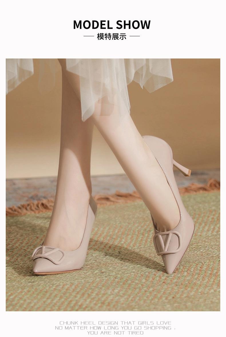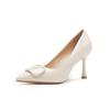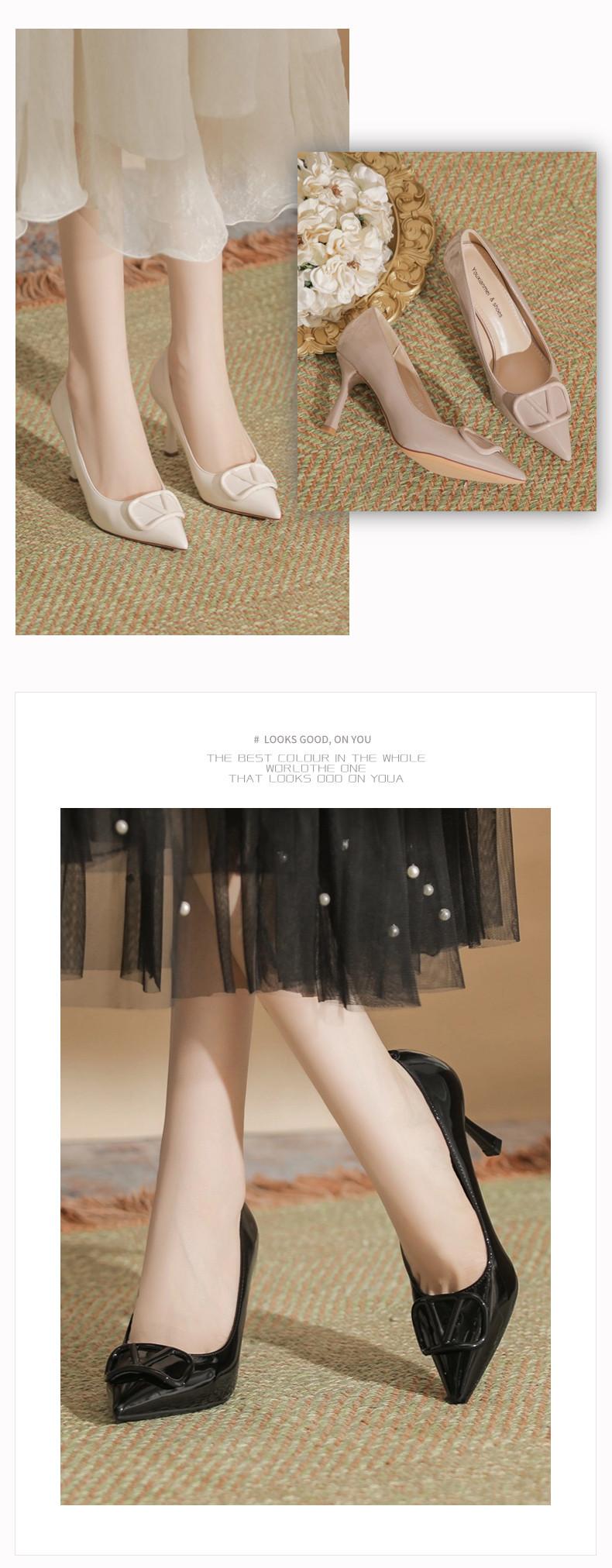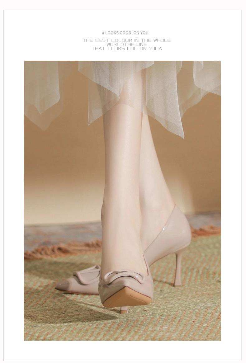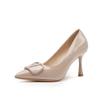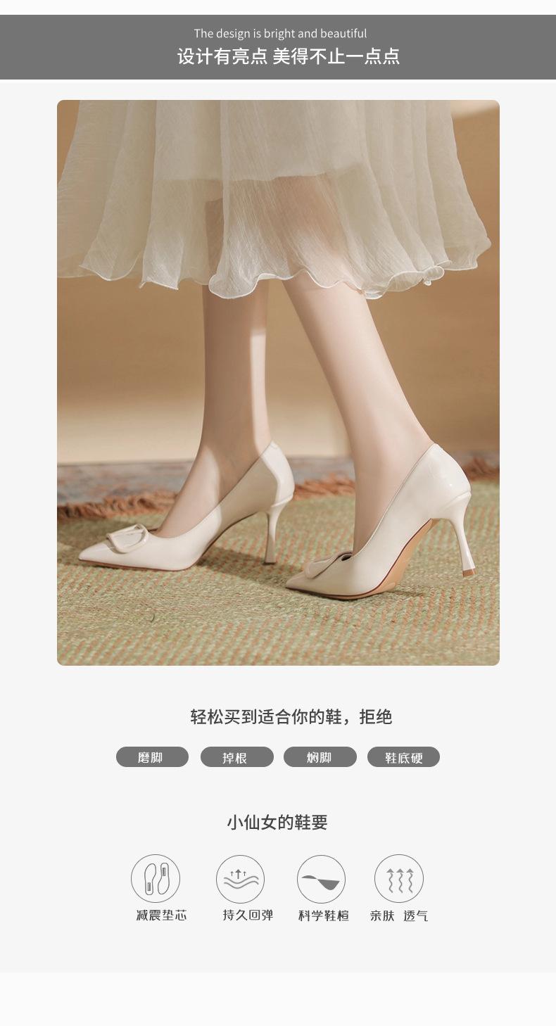 6685-2-053 Salto Alto de Bico Fino e Boca Baixa com Fivela de Flor, Sapatos Elegantes Femininos para Roupa de Trabalho Diária, Elegante, Confortável e Versátil