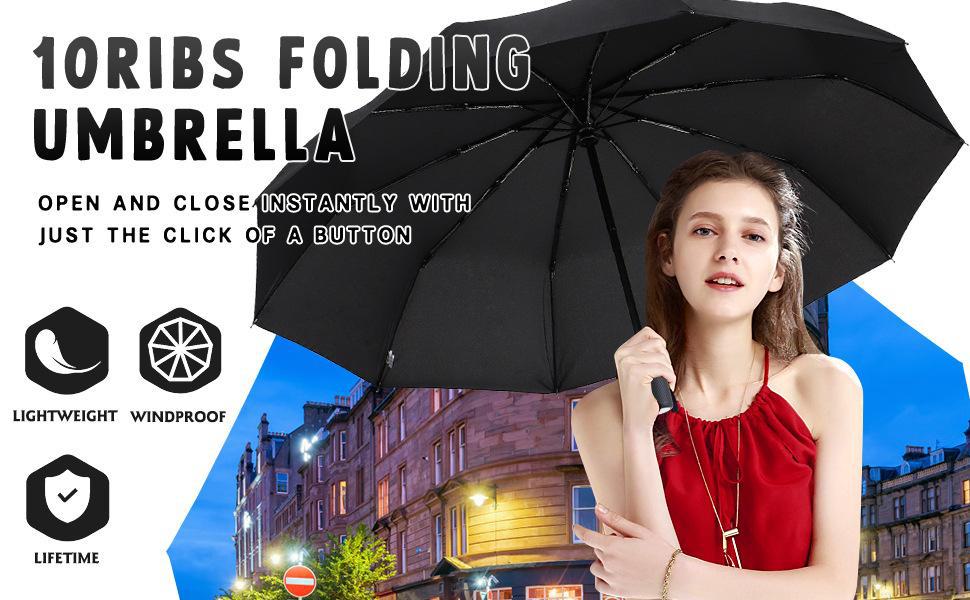 Guarda-chuva Totalmente Automático com 70% de Desconto Super Repelente à Água, Abertura e Fechamento com Um Clique, Guarda-chuva Dobrável À Prova de Vento com Logotipo Estampado, Guarda-chuva para Presente Publicitário