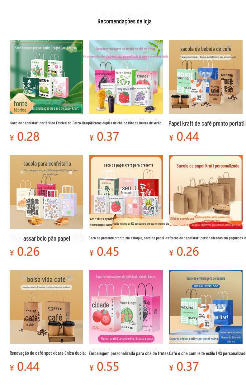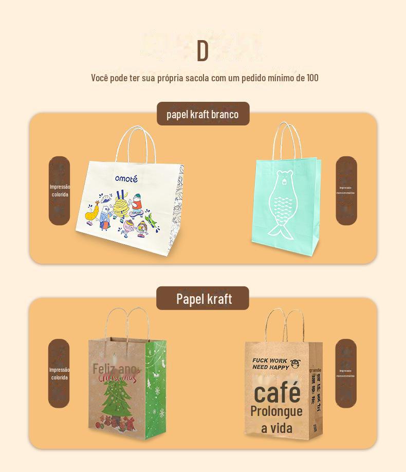 Spot saco de papel kraft engrossado saco de presente leite chá café assando takeaway saco de embalagem de roupas saco tote frete grátis