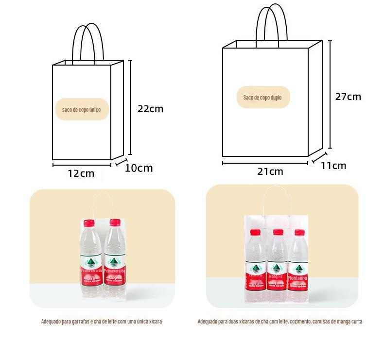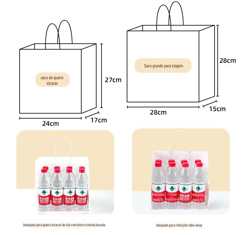 Single cup bag 12*10*22, Large takeout bag 28*15*28, Medium takeout bag 21*14*27, Four cup bag 24*17*27, Large...