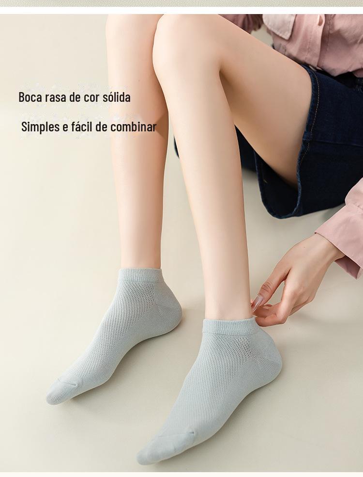 Meias de verão feminino algodão desodorante antibacteriano meias femininas japonesas de cor sólida feminina malha respirável sweat-absorbent barco Meias calcanhar feminino